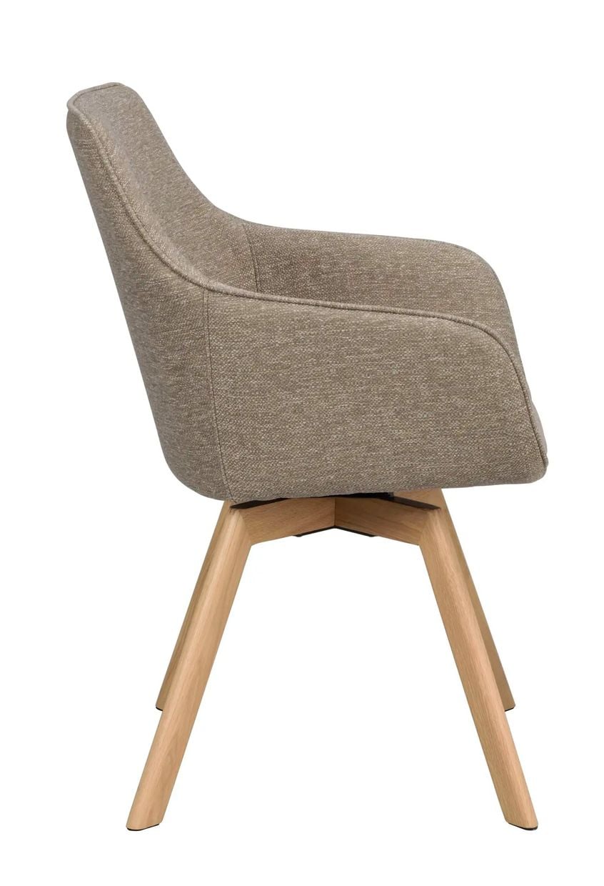 Alison karmstol i mörkbeige textil har precis som populära Alison stol ett snurrbart underrede i 360 grader. Den kupade stoppade sitsen och de höga armstöden gör stolen bekväm och ombonad att sitta i. Alison karmstol med träunderrede gör det lätt att matcha karmstolen med andra trämöbler i hemmet. Träet inuti sitsen och det lackade ekunderredet består av 100 % FSC®-certifierat trä.
