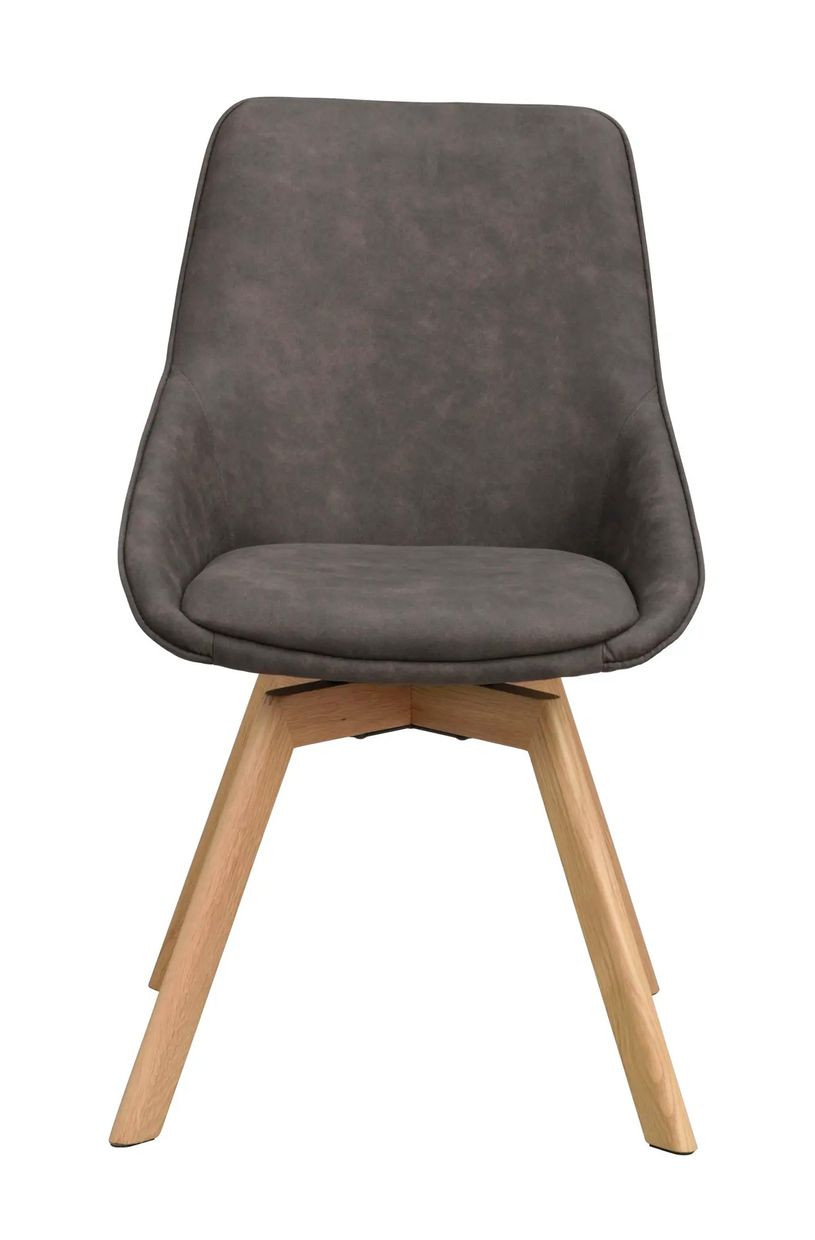 Populära Alison stol med träunderrede och snurrfunktion. Här syns den i ett tåligt mörkgrått microfibertyg och med ben i lackad ek. Alison har en stoppad sits med hög sittkomfort i kupad design och ben med snurrfunktion i 360 grader. Stolen passar perfekt runt matbordet men även som udda stol till skrivbordet. Alison är FSC®-certifierad och finns även i andra jordnära färger.