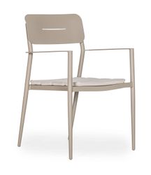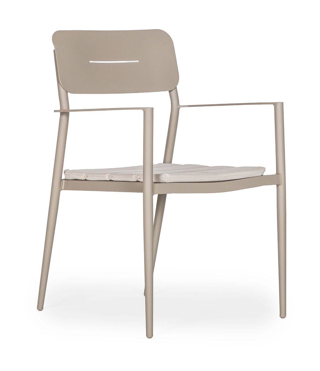 Lodes karmstol kompletterar bordet med sin bekväma sittkomfort och stilrena form. De integrerade armstöden ger extra stöd och gör stolen lika skön att sitta i under långa middagar som under avslappnade stunder i solen. Den genomtänkta designen bidrar till ett lätt och harmoniskt helhetsintryck.