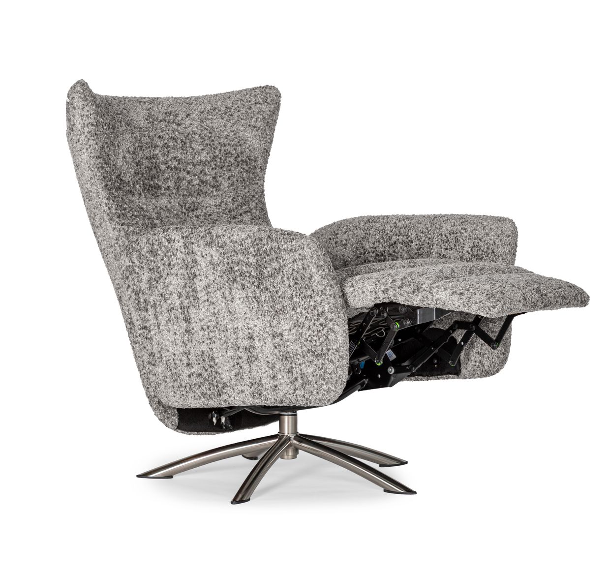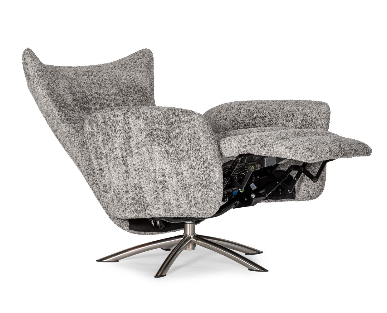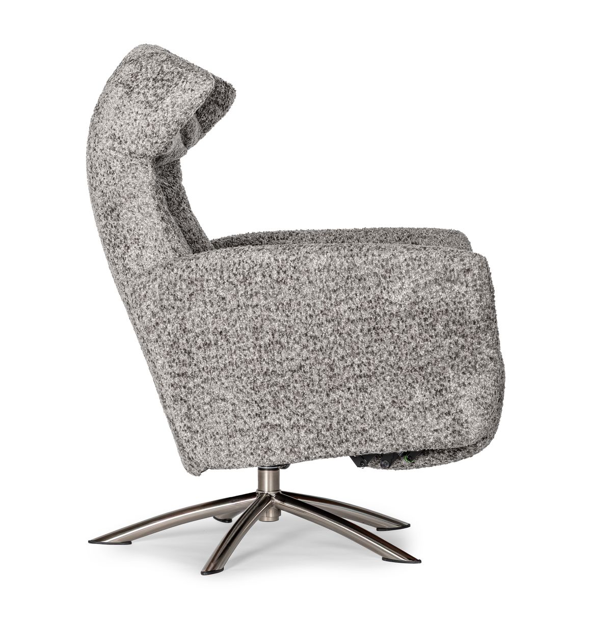Arild är utrustad med ett inbyggt fotstöd som enkelt fälls ut när du lutar dig tillbaka. Ryggstödet regleras med antingen manuell spak (på insidan av armstödet) eller via elektrisk panel beroende på val av modell. Du kan dessutom välja till ett batteripaket, vilket gör att du slipper synliga sladdar – perfekt när fåtöljen ska stå fritt i rummet.