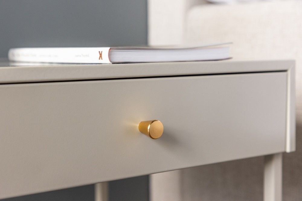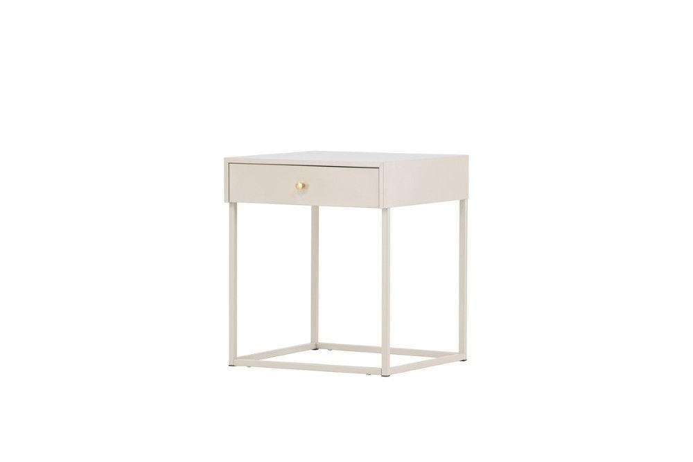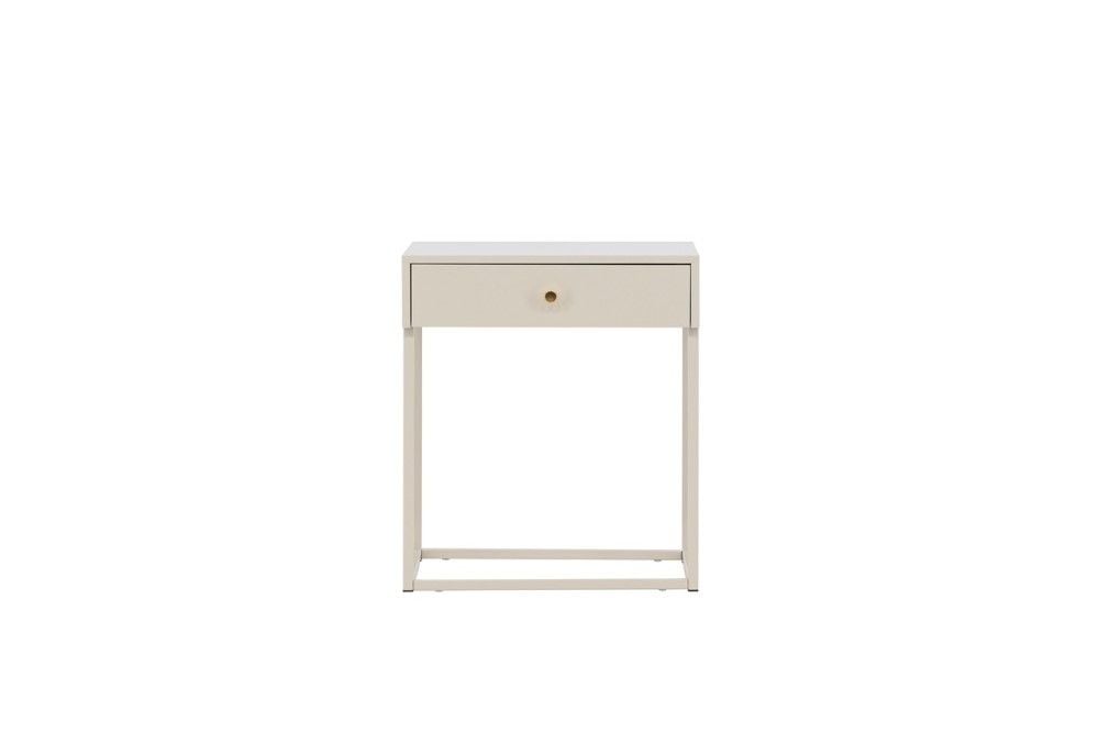 Ge ditt sovrum en modern touch med hjälp av vårt stilrena, beige sängbord i skandinavisk stil från serien Bakal! Med en magisk kombination av tidlös design och nordisk inspiration kommer detta stilrena sängbord i beige att förvandla ditt sovrum till en plats av både modemedvetenhet och ordning. Sängbordet har en smart låda för dold förvaring med en vacker mässingsfärgad knopp som blir pricken över i:et. Förvara din kvällsbok, glasögon eller småskatter på ett smidigt sätt nära till hands. Men viktigt att tillägga är att Bakal sängbordet givetvis inte bara är begränsat till sovrummet. Med sina rena linjer och luftiga form är det lika passande som sidobord i vardagsrummet eller extra förvaring i badrummet. Det skapar en harmonisk atmosfär oavsett var det placeras och blir en omedelbar förlängning av din personliga inredningsstil!