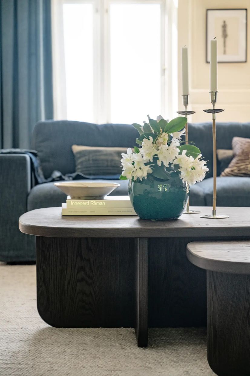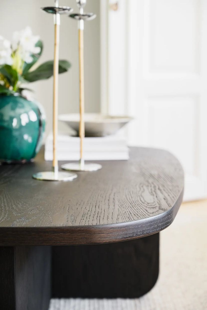 Billings soffbord är ett harmoniskt möte mellan rundade former och en gedigen konstruktion. Det är tillverkat i brun ekfaner samt behandlat med olja som lyfter fram träets naturliga ådring och unika karaktär. Alla detaljer från skivan till benen skapar ett organiskt och inbjudande uttryck. Bordet passar extra fint ihop med lite större soffor, och om du köper soffbordet i de två olika storlekarna kan du med fördel kombinera dem som satsbord framför soffan. Billings soffbord är stabilt, stilrent och skapat för att både stå stadigt och se mjukt ut – det förhöjer helheten i det moderna vardagsrummet.