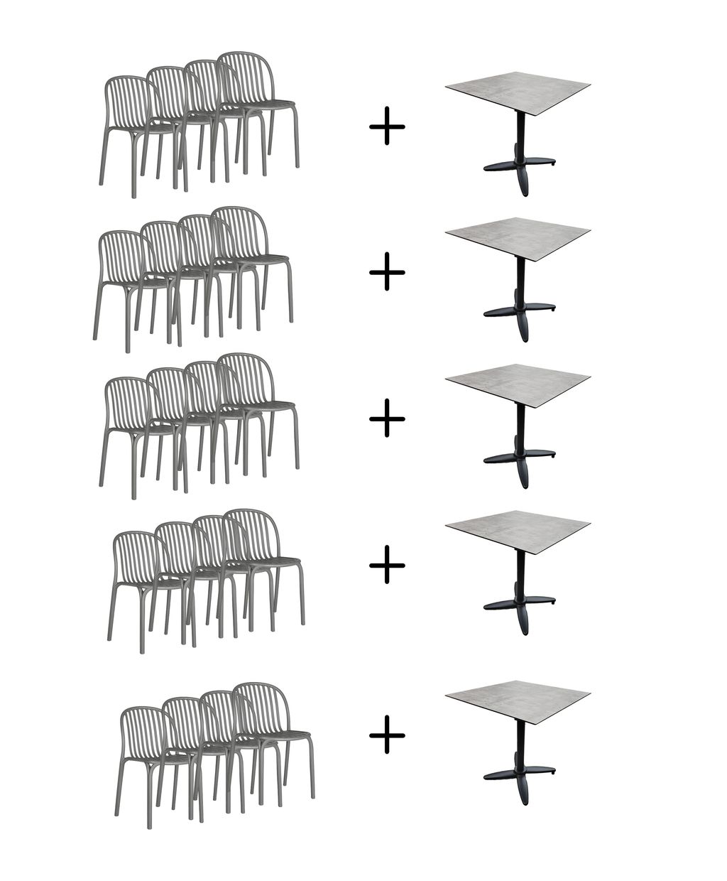 Restaurangset – 20 Noa-stolar & 5 Bistro cafebord Grå