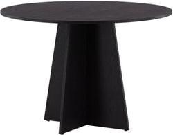 Här har vi en elegant och stilren matgrupp som kombinerar modern design med en varm och inbjudande känsla. Med en bordsskiva på 110 cm i diameter erbjuder detta matbord tillräckligt med utrymme för fyra personer att njuta av trevliga middagar tillsammans. Bordet står på en stabil, geometrisk bas som ger både stabilitet och en touch av samtida design.