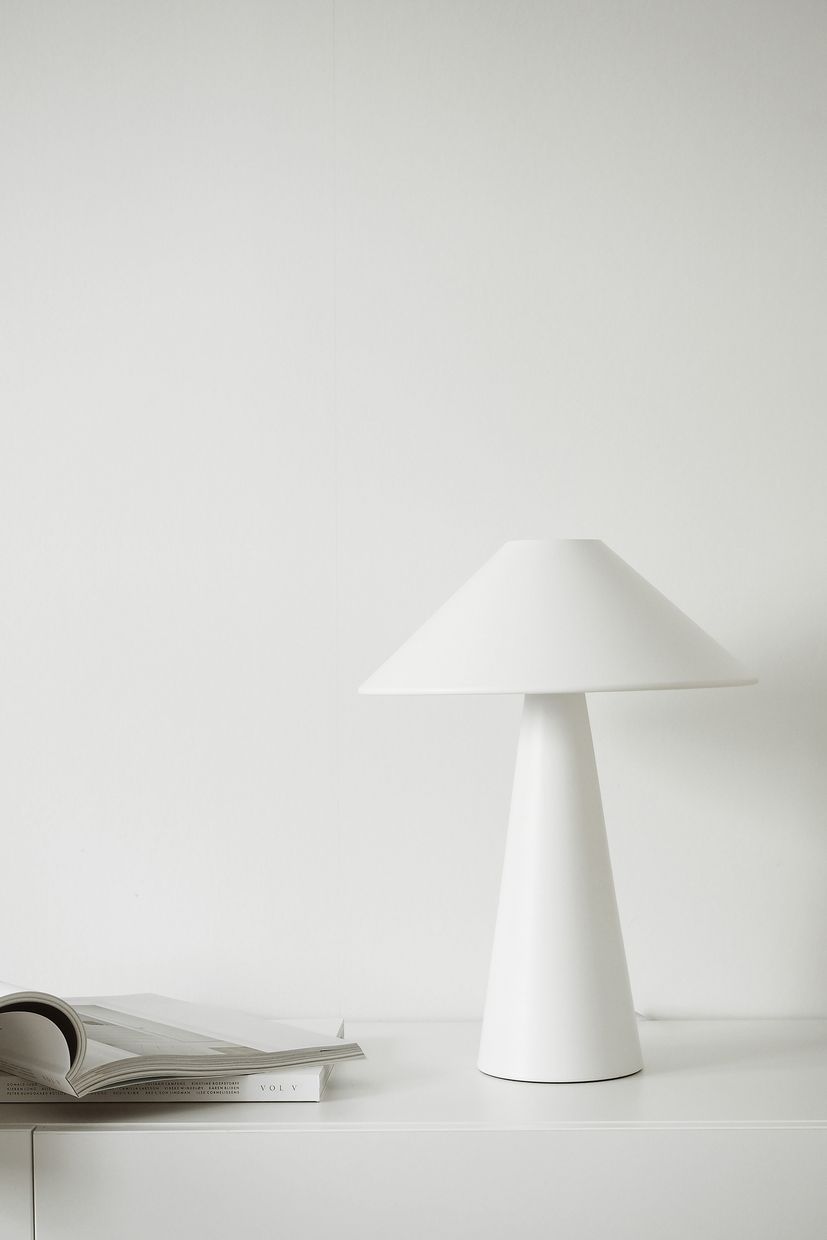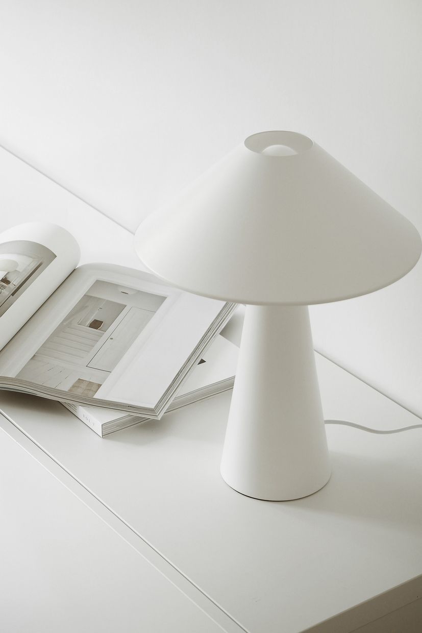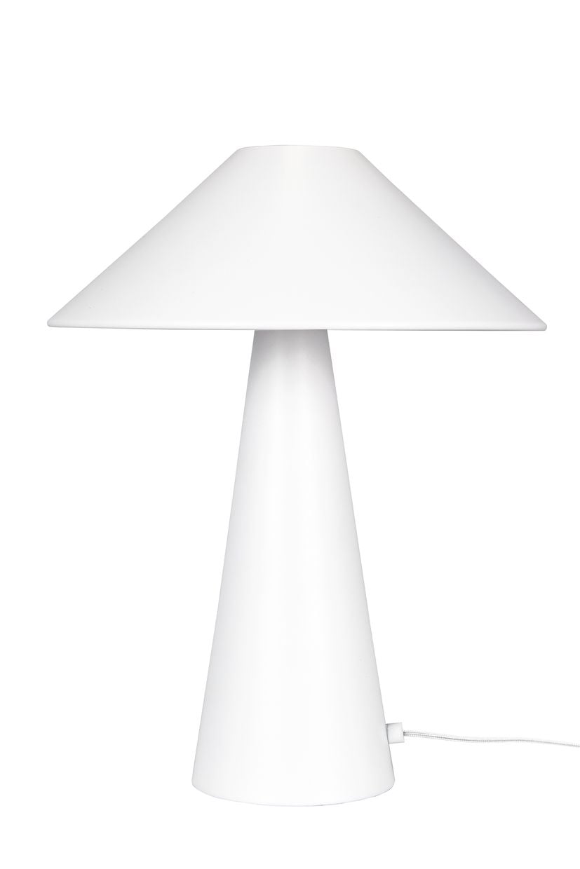 Stilren och trendig bordslampa i lackerad mattvit metall, vilket ger ett krispigt och modernt intryck. Lampan passar utmärkt i ett djupare fönster, på sidobordet eller bredvid sängen. Lampan har en 200 cm lång vit textilkabel med brytare och stickkontakt.