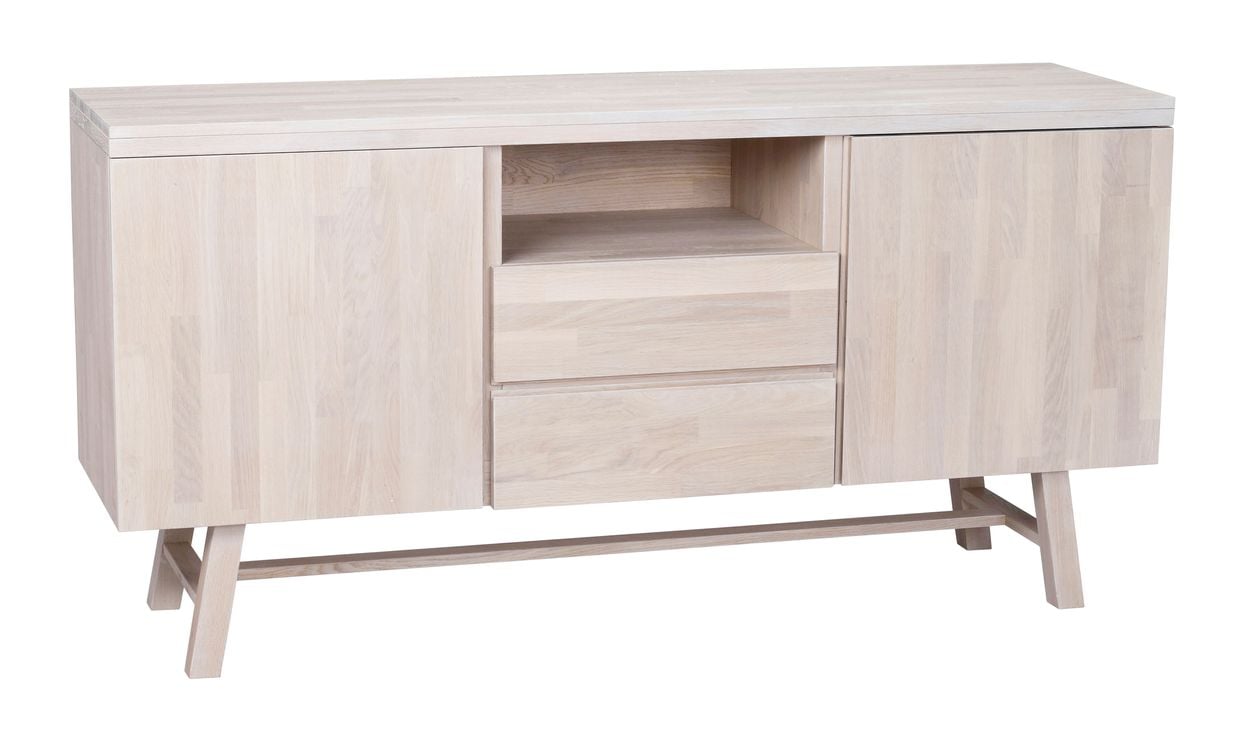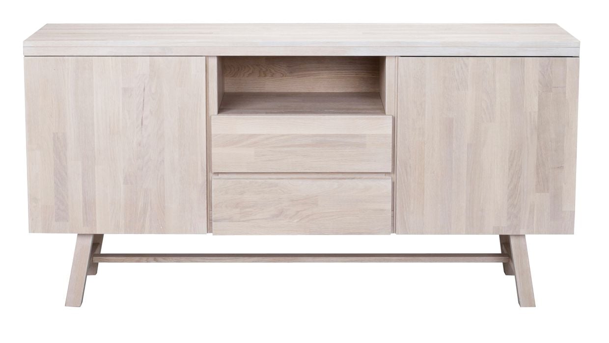 Funktionellt sideboard i stilren design med gott om förvaring. Tillverkat i massiv europeisk ek som behandlats med vitpigmenterad olja. Luckor och lådor har en mjukstängande sk soft-close funktion. Skåpet ingår i vår omfångsrika Brooklyn-serie där samtliga delar är FSC-certifierade.