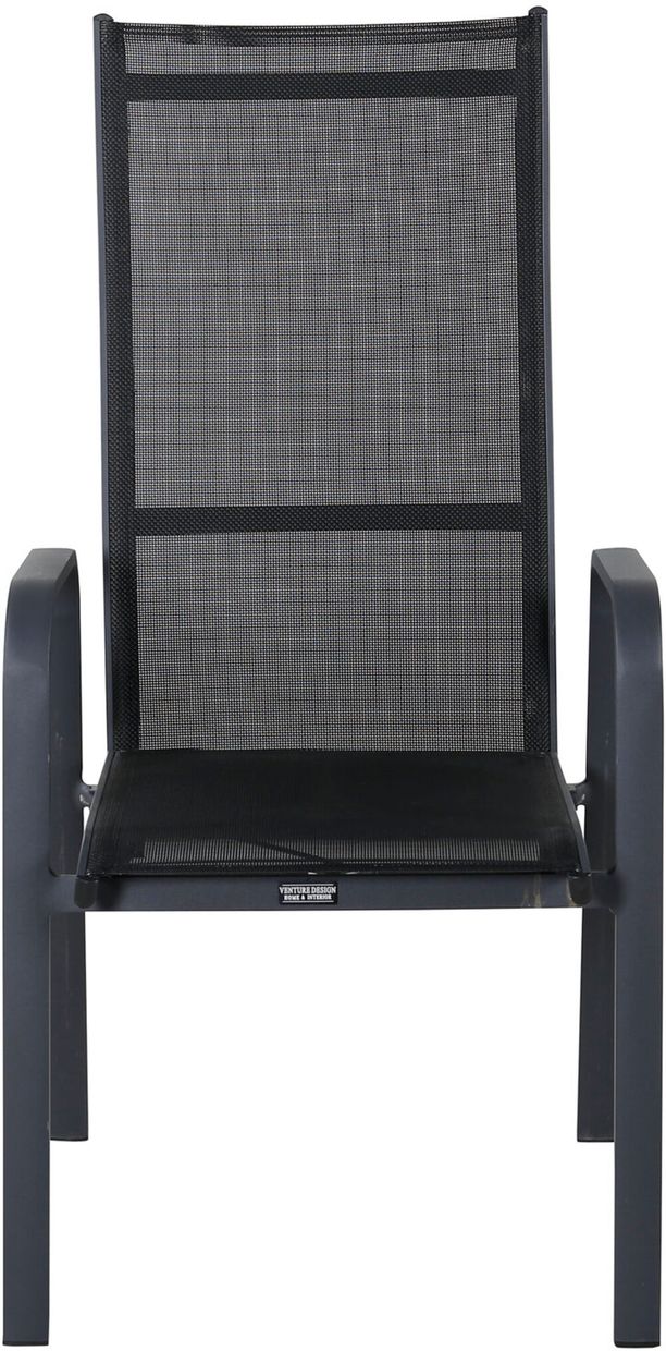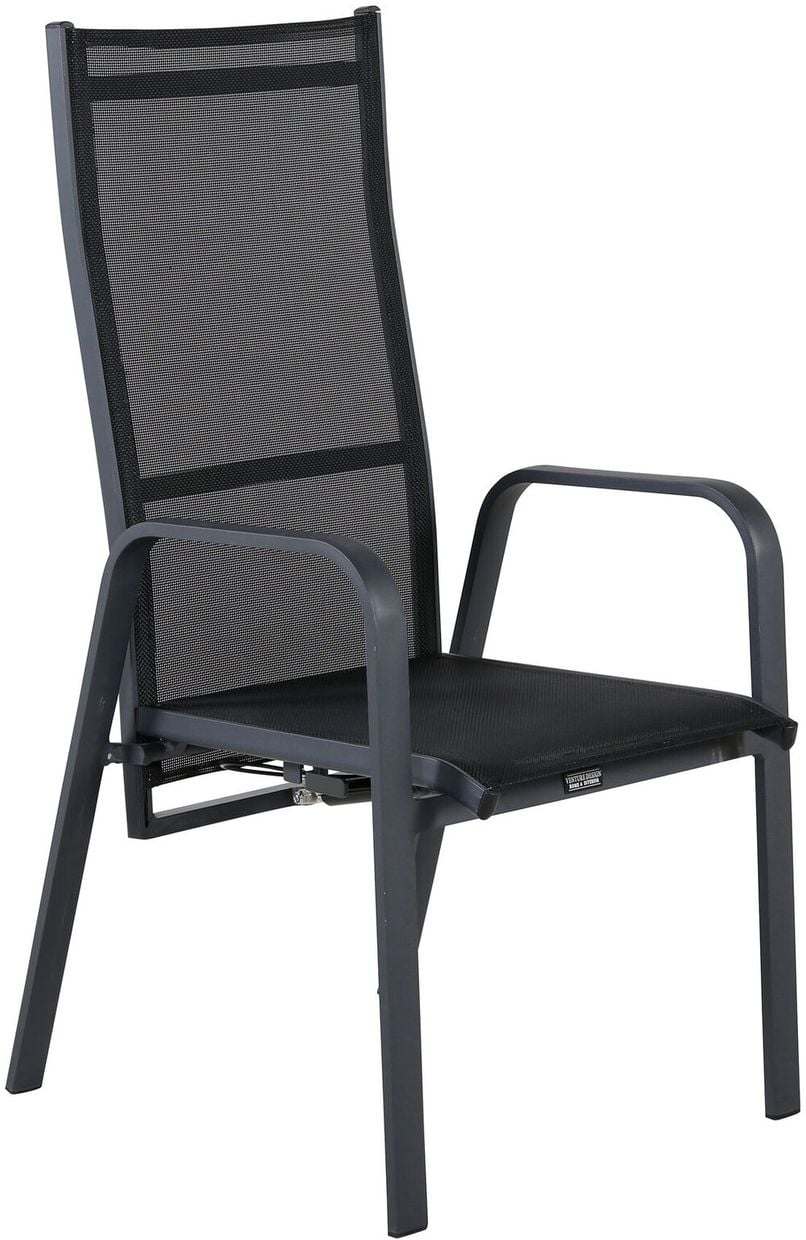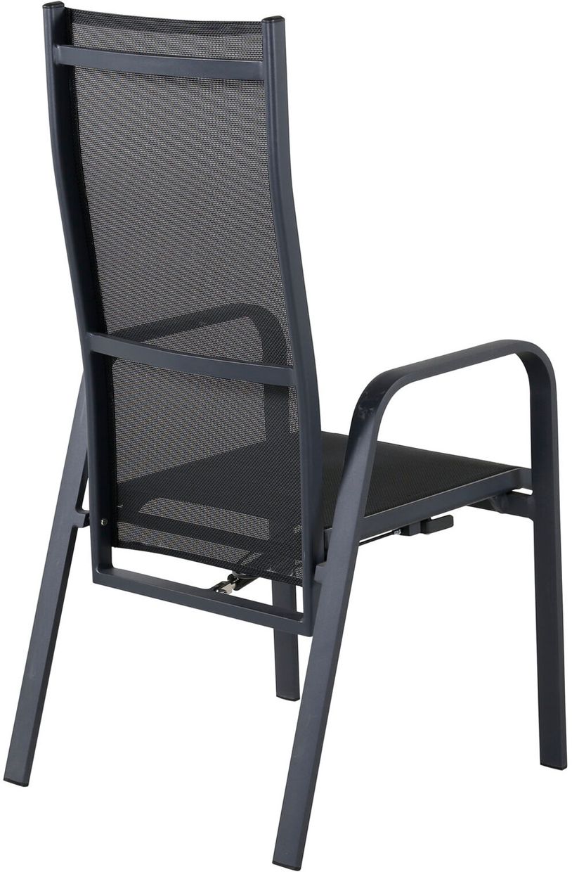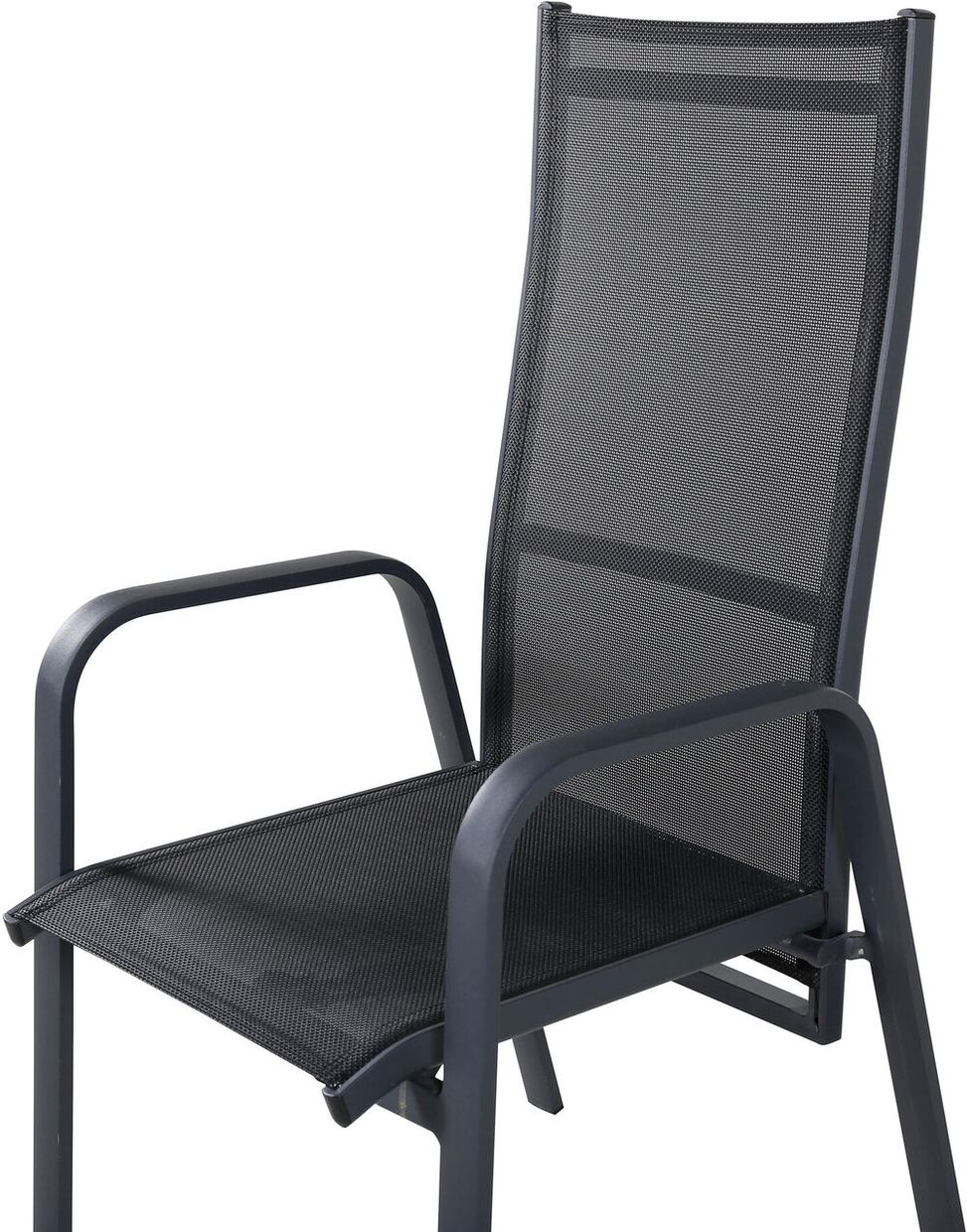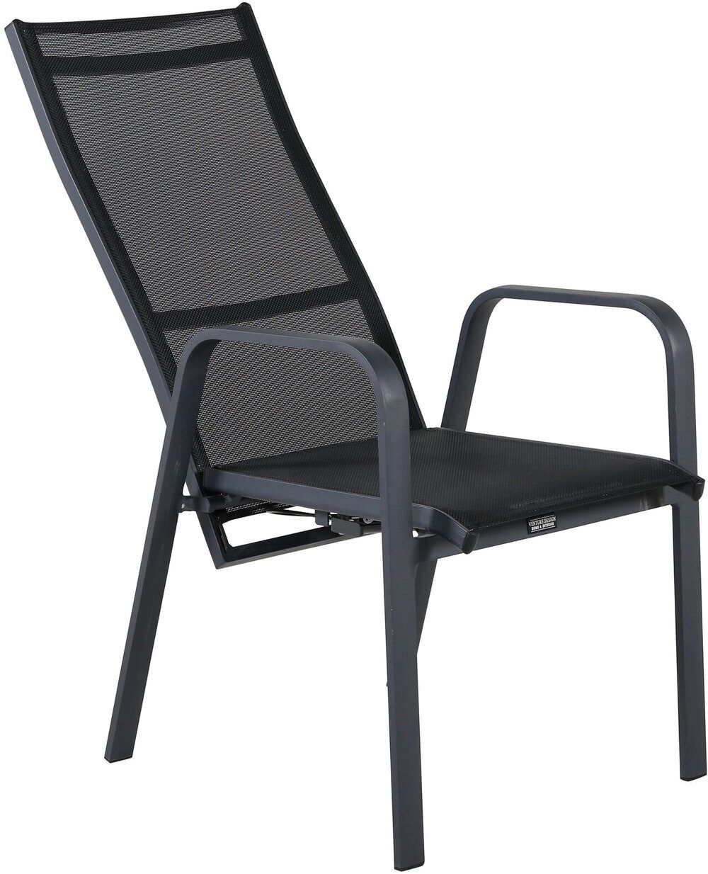 Copacabana, en modern stapelbar karmstol i svart kulör som gör sig utmärkt vid matbordet på altanen. Stolens ryggstöd går att fälla vilket gör att den är väldigt bekväm och praktisk. Njut av sommaren på allra bästa sätt!