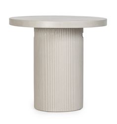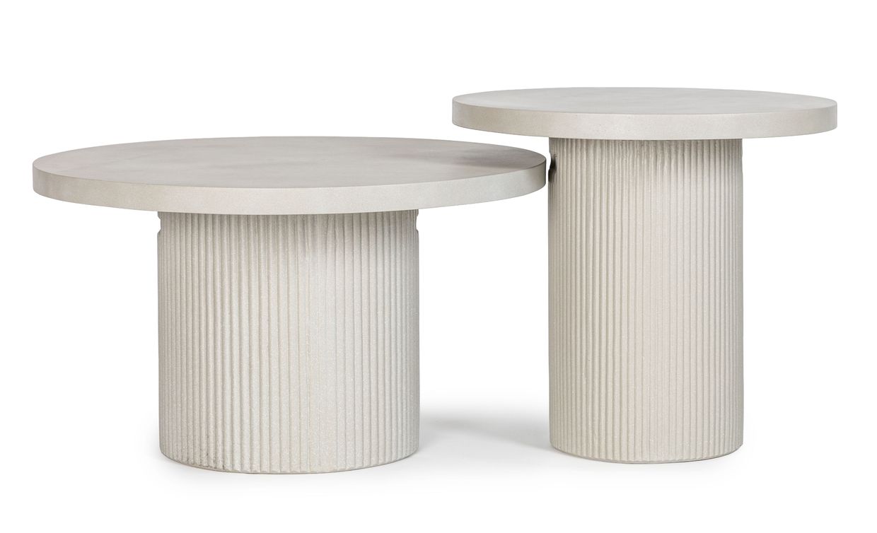 Den räfflade basen tillsammans med den stilrena bordsskivan skapar ett uttryck som känns både modernt och tidlöst. Den neutrala färgtonen gör det enkelt att matcha borden med olika loungemöbler och stilar, oavsett om du vill skapa en minimalistisk eller mer ombonad miljö.