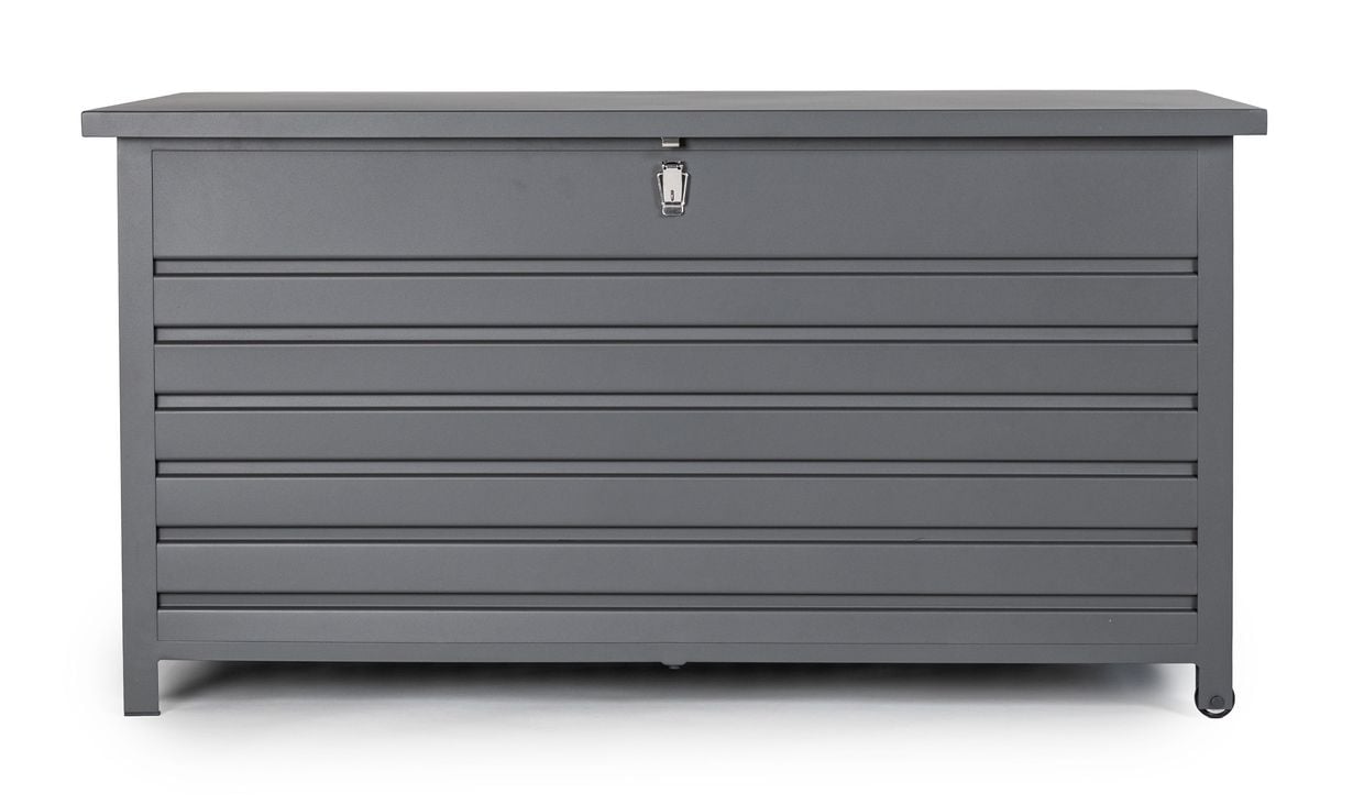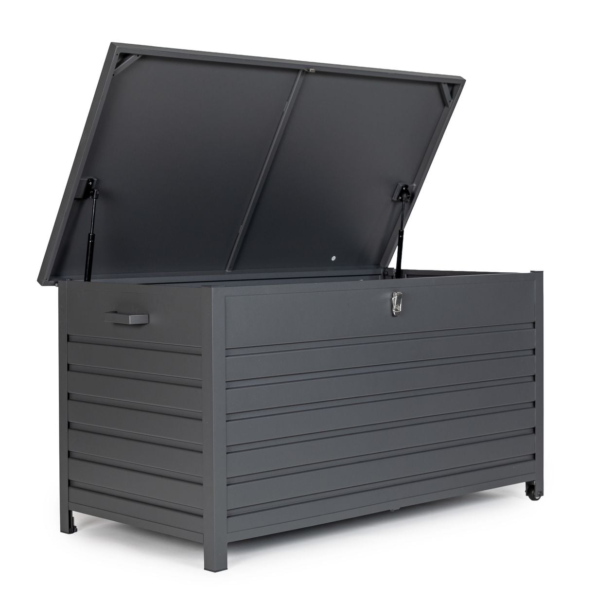 Dynlådan är tillverkad helt i aluminium, inklusive handtaget, vilket gör den både slitstark och lätt att hantera. Konstruktionen är anpassad för utomhusbruk och erbjuder en hållbar lösning för förvaring av dynor och andra tillbehör.