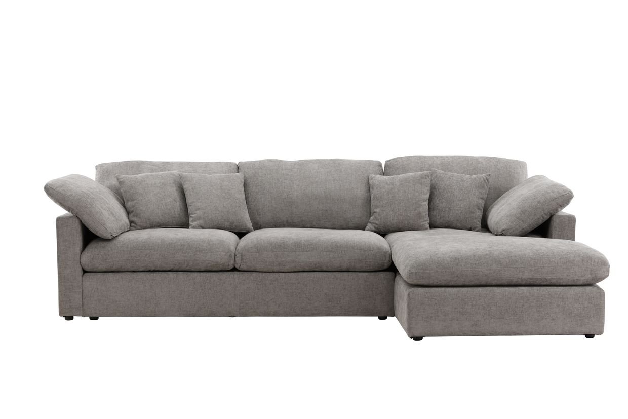 Hörnsoffans smarta design utnyttjar utrymmet maximalt och erbjuder en generös sittyta för både avkoppling och gemenskap. Den är vändbar, vilket gör den flexibel och enkel att anpassa efter rummets form och stil.
