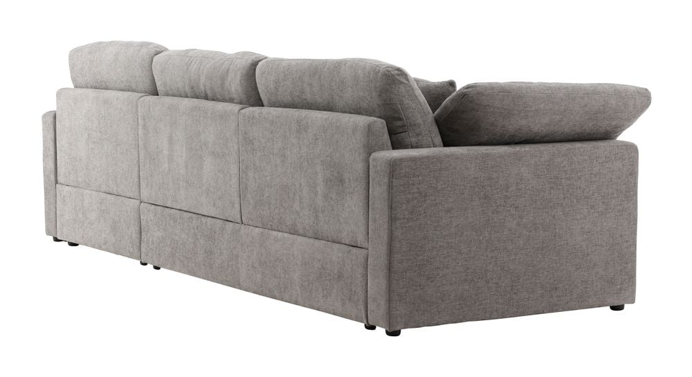 Den mörkgråa tonen skapar en varm och välkomnande atmosfär, idealisk för att bygga en harmonisk känsla i vardagsrummet. Tyget är slitstarkt och enkelt att underhålla, samtidigt som den lena ytan bjuder in till sköna och avkopplande stunder.