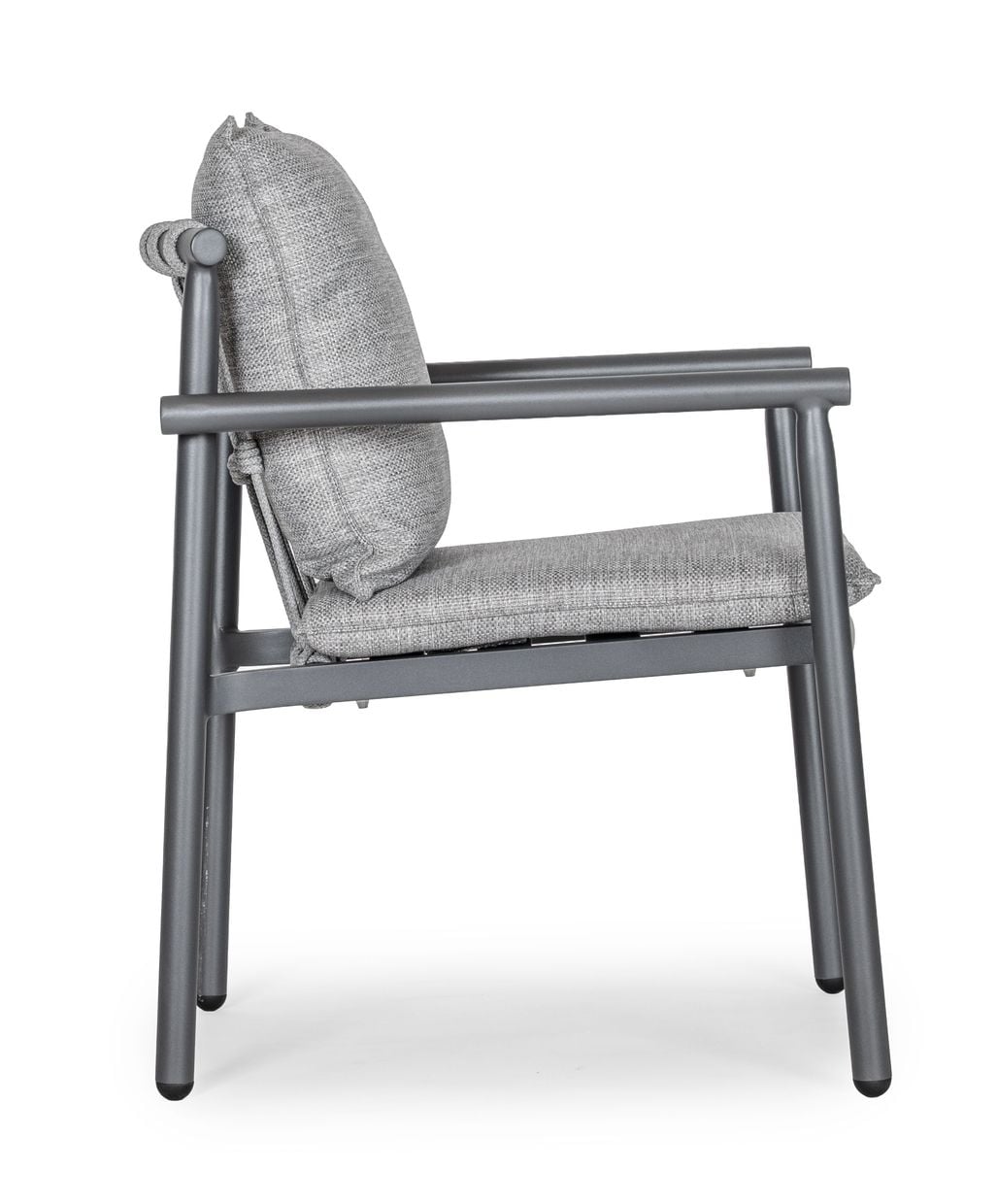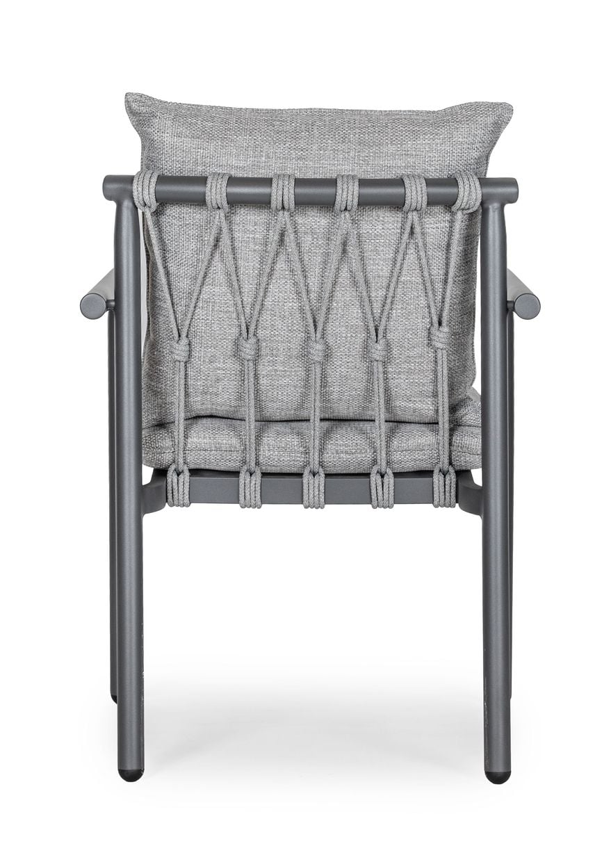 Stolen är tillverkad i aluminium, ett material som både är rostbeständigt och underhållsfritt. Aluminium gör stolen stabil men samtidigt lätt att flytta, vilket gör den idealisk för flexibel möblering på uteplatsen.