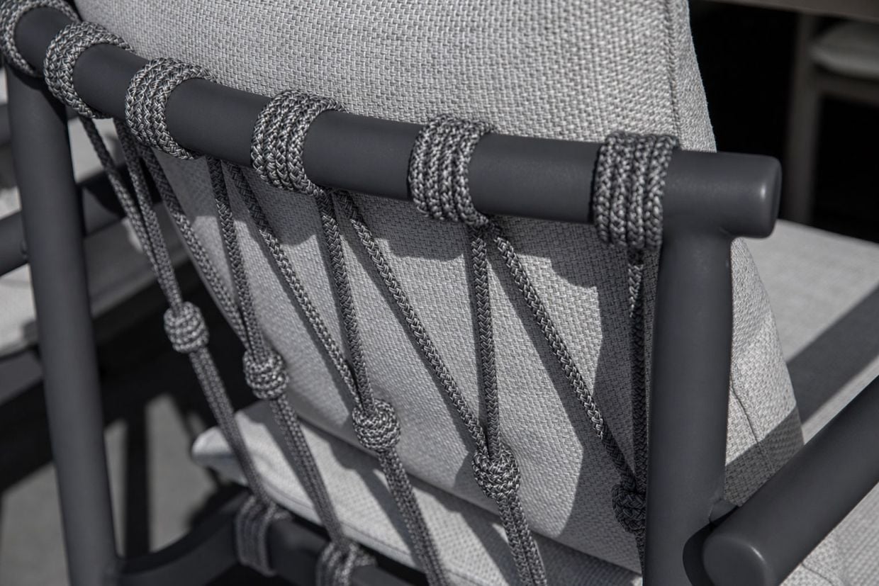 Stolarna i Falsterbo matgrupp är designade för både stil och komfort. Med en stomme i pulverlackerad aluminium är de rostfria och hållbara, samtidigt som de är lätta att flytta runt. Ryggstödet har en vacker flätad repdesign, vilket ger en luftig och modern känsla. Sittkomforten är förstklassig tack vare de väderbeständiga dynorna i Olefin, ett material som är känt för sin mjukhet, hållbarhet och motståndskraft mot både fukt och solblekning.