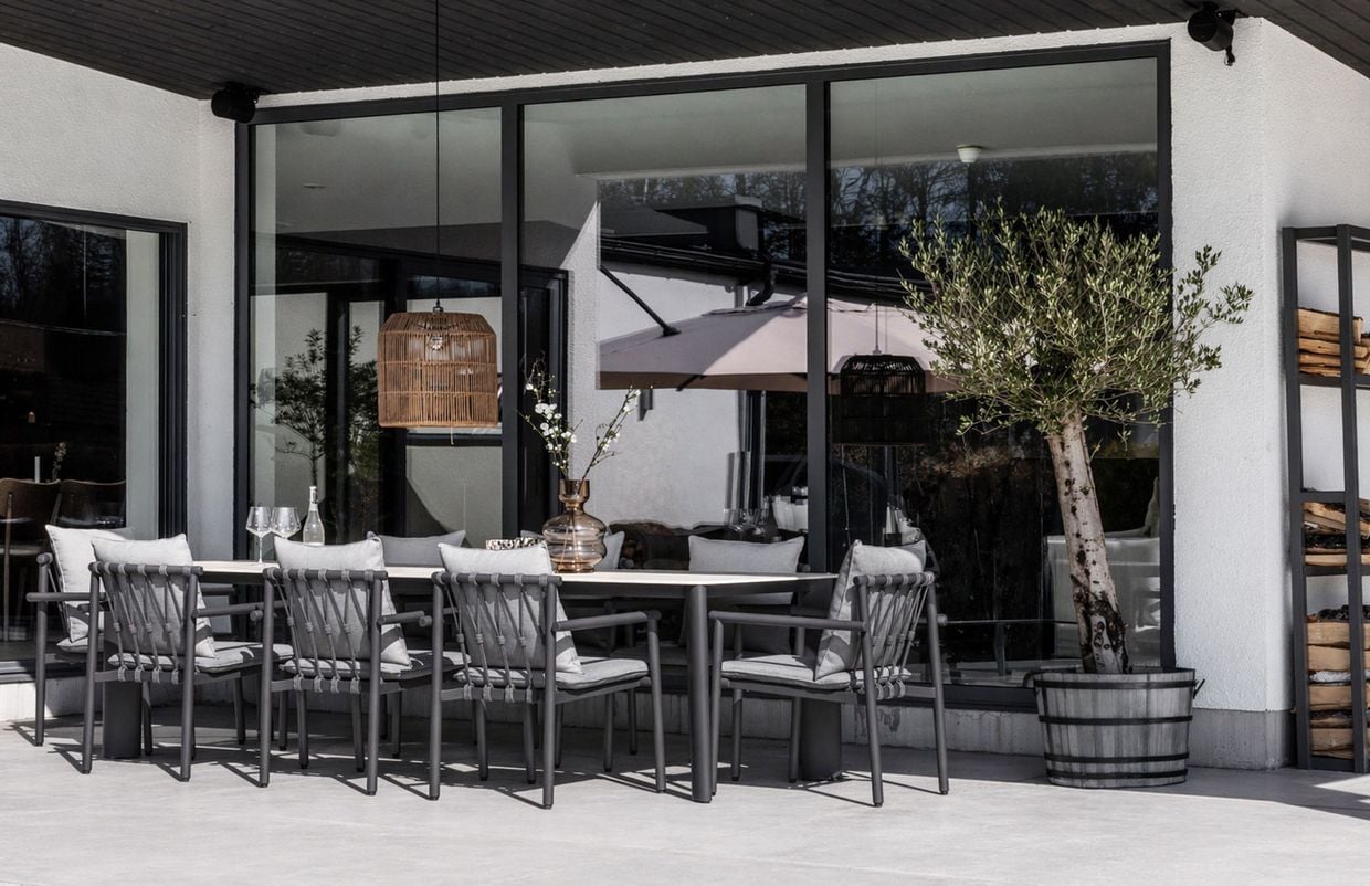 Med Falsterbo matgrupp kan du njuta av långa måltider med familj och vänner i en stilren och bekväm miljö. Oavsett om det är en solig sommarlunch eller en mysig middag i kvällsljuset, blir denna matgrupp en naturlig samlingspunkt på din uteplats.