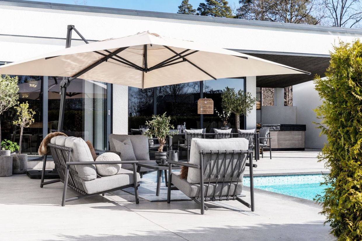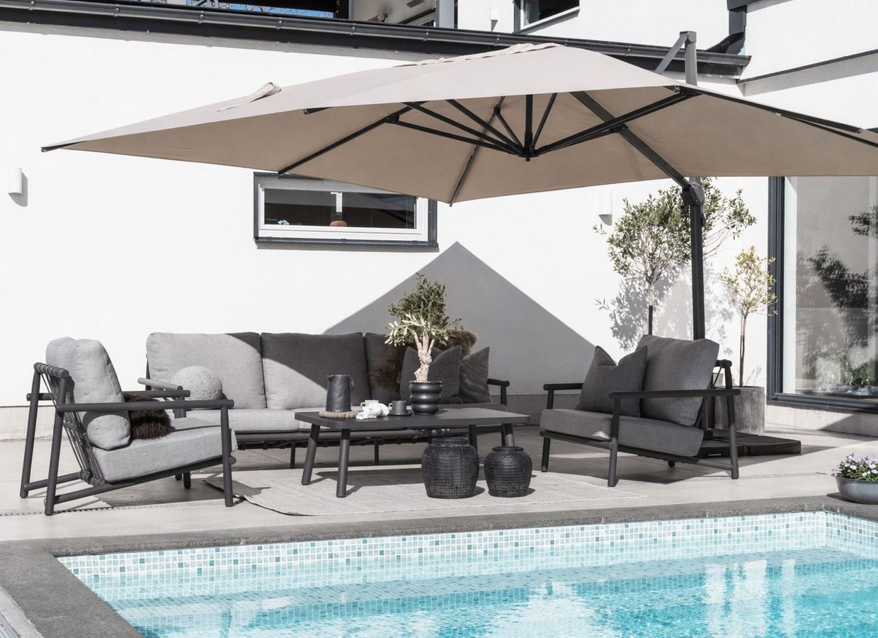 Falsterbo är en elegant och bekväm soffgrupp som kombinerar tidlös design med hållbara material. Med sin genomtänkta konstruktion och inbjudande komfort blir den snabbt en favorit på uteplatsen.