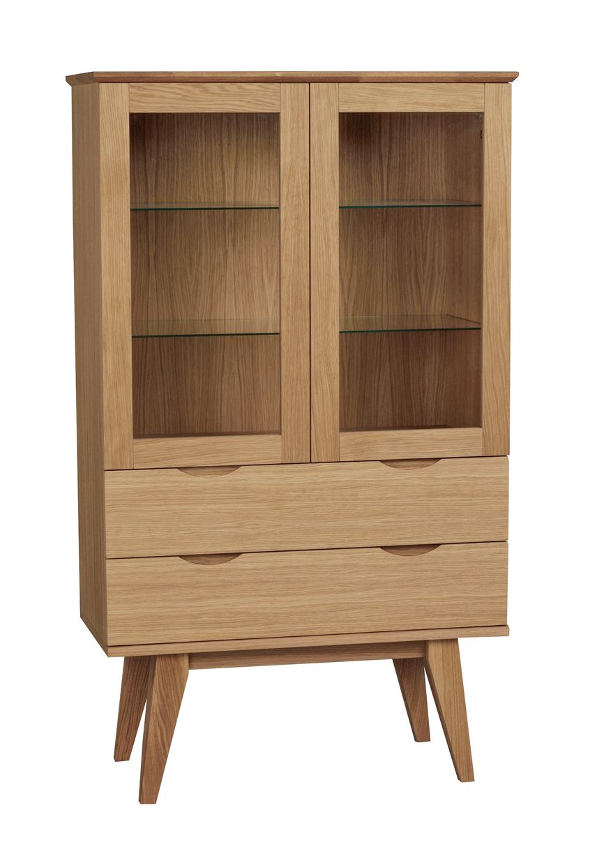 Stilsäkert vitrinskåp i oljad ek. Mjukstängande lådor och dörrar, sk soft-close, samt flyttbara hyllplan i härdat glas. Benen är lätt utställda vilket ger ett modernt uttryck. Vitrinskåpet ingår i vår breda Filippa-serie som även har flera matchande matbord i olika storlekar. Tänk på att! Oljebehandlade ytor ska behandlas med möbelolja innan den används och sedan regelbundet 2- 3 gånger per år för att bibehålla motståndskraft mot fläckar och repor.