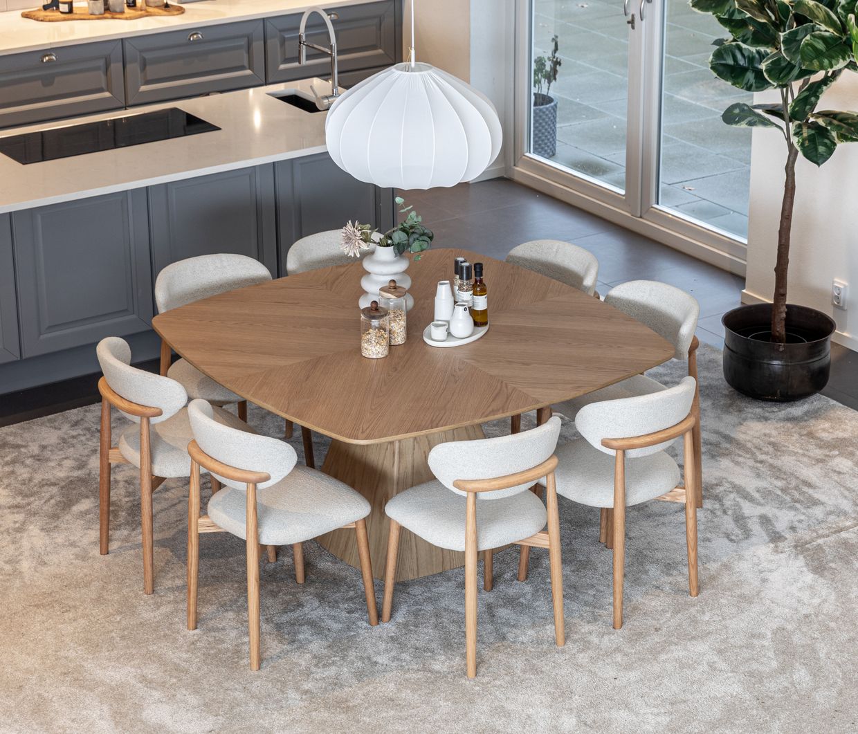 Float matbord 150x150 cm ek med Le Chic stolar