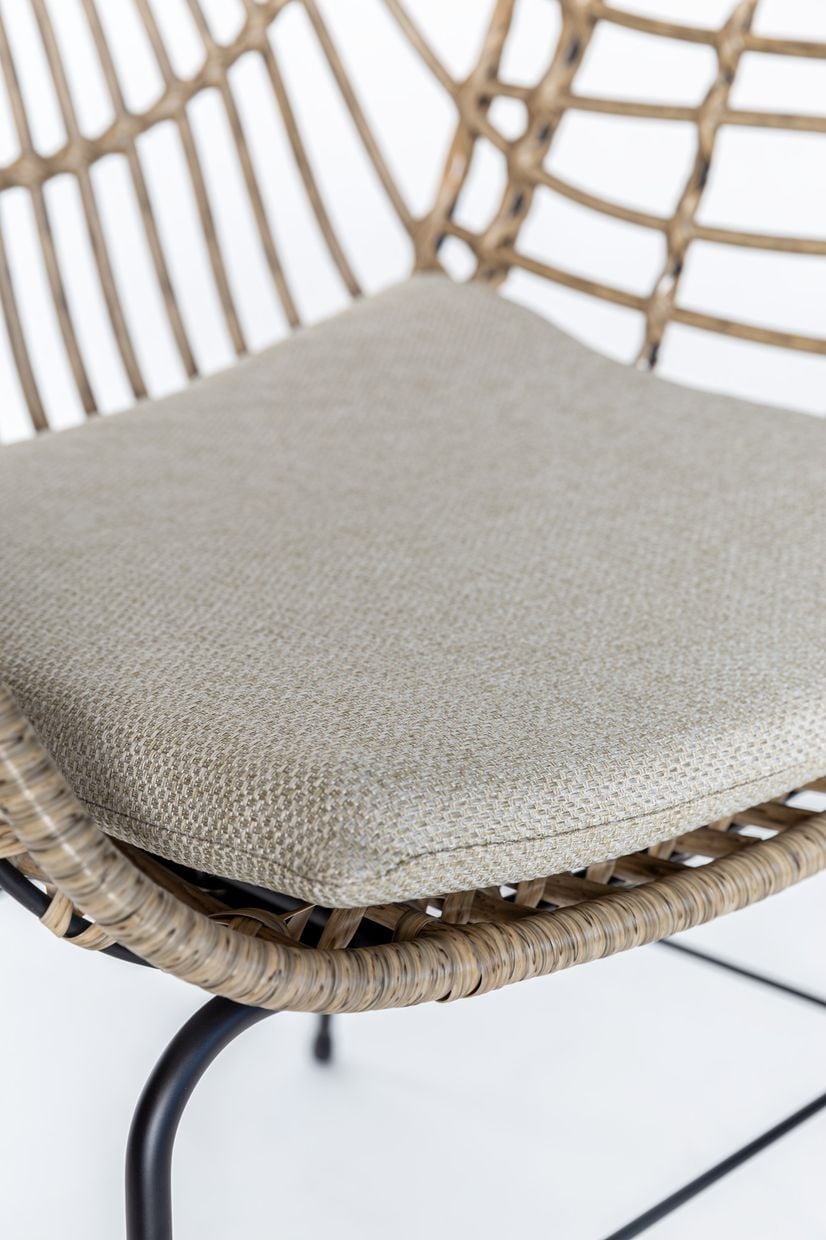 Beddinge karmstolarna kompletterar bordet med sin mjuka, organiska form och sitt vackert flätade utförande i naturfärgad konstrotting. Materialet ger en varm och naturlig känsla samtidigt som det är slitstarkt och lättskött. De bekväma sittdynorna bidrar till en avslappnad och behaglig sittupplevelse.