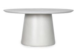 Floby matbord är tillverkat i fiberbetong, vilket ger en gedigen och robust känsla samtidigt som materialet är mer lättviktigt än traditionell betong. Den runda formen skapar en social och inbjudande atmosfär där alla runt bordet enkelt kan samlas.