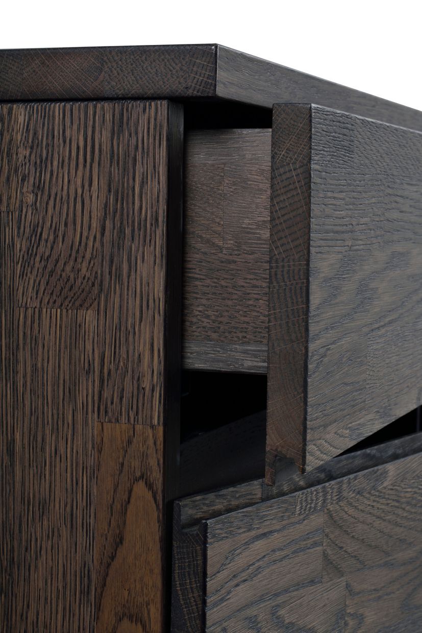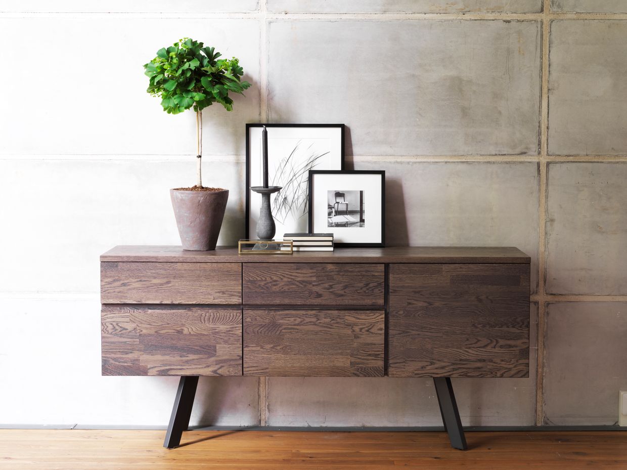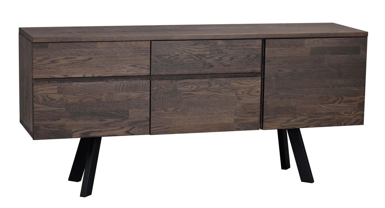 Populära Fred sideboard i lackad massiv mörkbrun 100% FSC-certifierad ek med lätt utställda ben i pulverlackad svart metall och gott om förvaringsutrymme. Både lådor och luckor har mjukstängande soft-close funktion och skåpen innehåller flyttbara hyllor för extra flexibilitet. Sidebordet ger ett exklusivt intryck och passar fint i våra skandinaviska hem. I serien ingår det även matbord i flera olika storlekar.