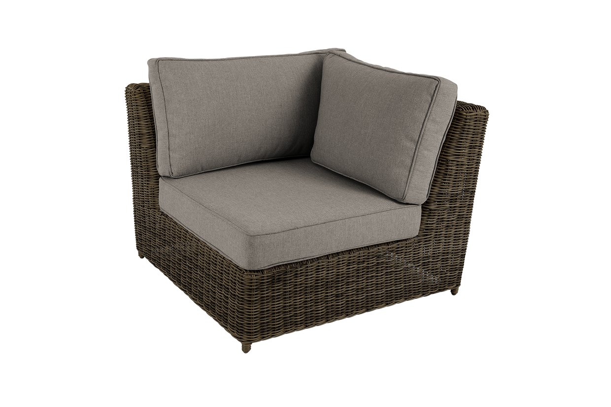 Klassiska möbler i rund konstrotting med rustikt utseende. Generöst sittutrymme och alldeles lagom lutning gör att du vill koppla av länge. Tack vare de olika delarna kan du komponera just den grupp som passar din uteplats, med Glendon kan du verkligen förlänga hemmet utåt.