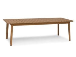En stilfull och modern matstol i mörkgrå tygband i olefin med UV-skydd. Banden är på en stomme av aluminium och stolens trädetaljer är i teak. Mörkgrå sittdyna ingår.Ett vackert stilrent matbord tillverkad i teak.