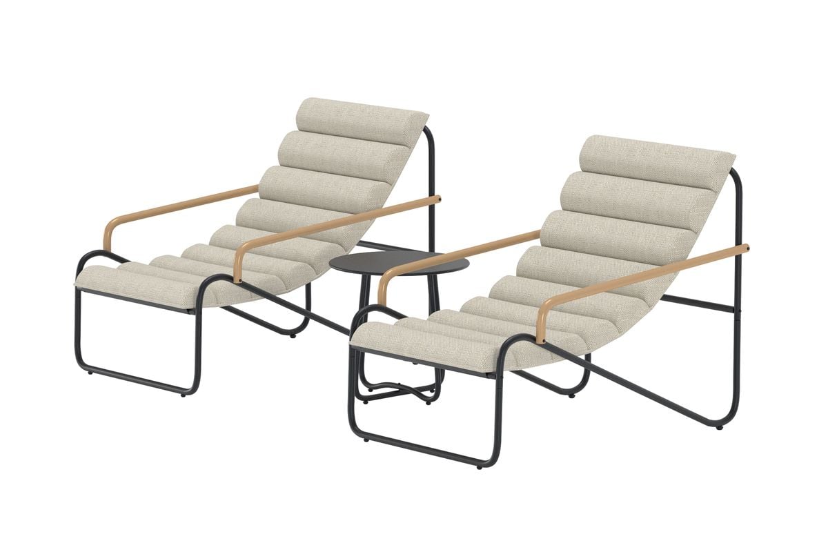 Isak loungegrupp är en modern och inbjudande möbelgrupp som kombinerar stil och komfort. Med sin svarta ram och mjuka beiga dynor får gruppen ett elegant uttryck som passar perfekt på uteplatsen, balkongen eller i trädgården. De generöst stoppade stolarna är utformade för avkoppling och gör det enkelt att luta sig tillbaka och njuta. Det lilla bordet i mitten blir en praktisk yta för kaffe, böcker eller sommarens drinkar. Isak loungegrupp är det perfekta valet för dig som vill skapa en avslappnad och stilfull plats för umgänge och vila.
