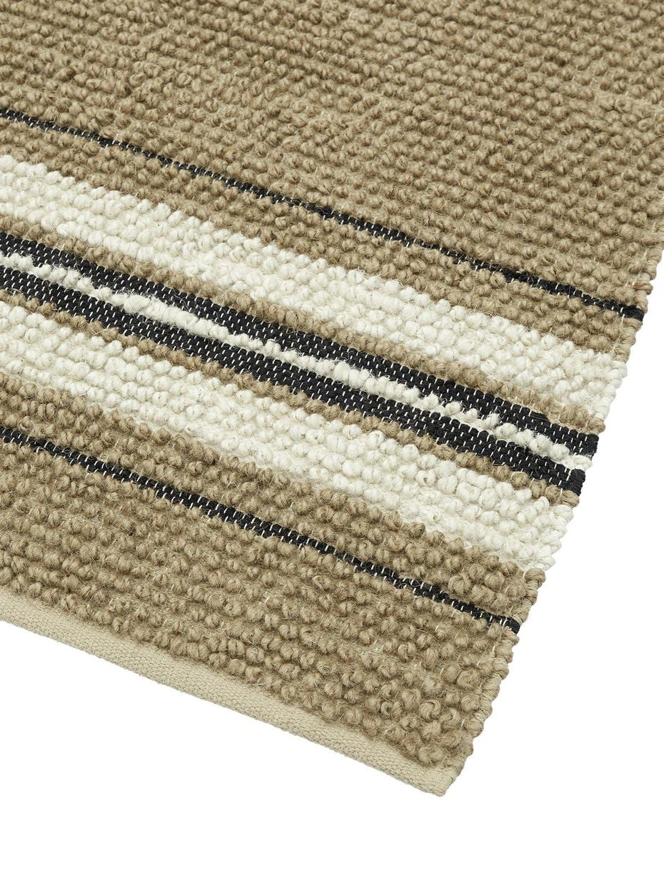 Jolin är en dekorativ matta i kraftigt jute med struktur och ränder i vitt och svart på kortsidorna. Passar lika bra utomhus, i växthus och uterum som inomhus. Men tänk på att den får patina om den ligger ute. Mått 170x240cm. Rengör eventuella fläckar med fuktig trasa eller lämna för fackmannamässig mattvätt.