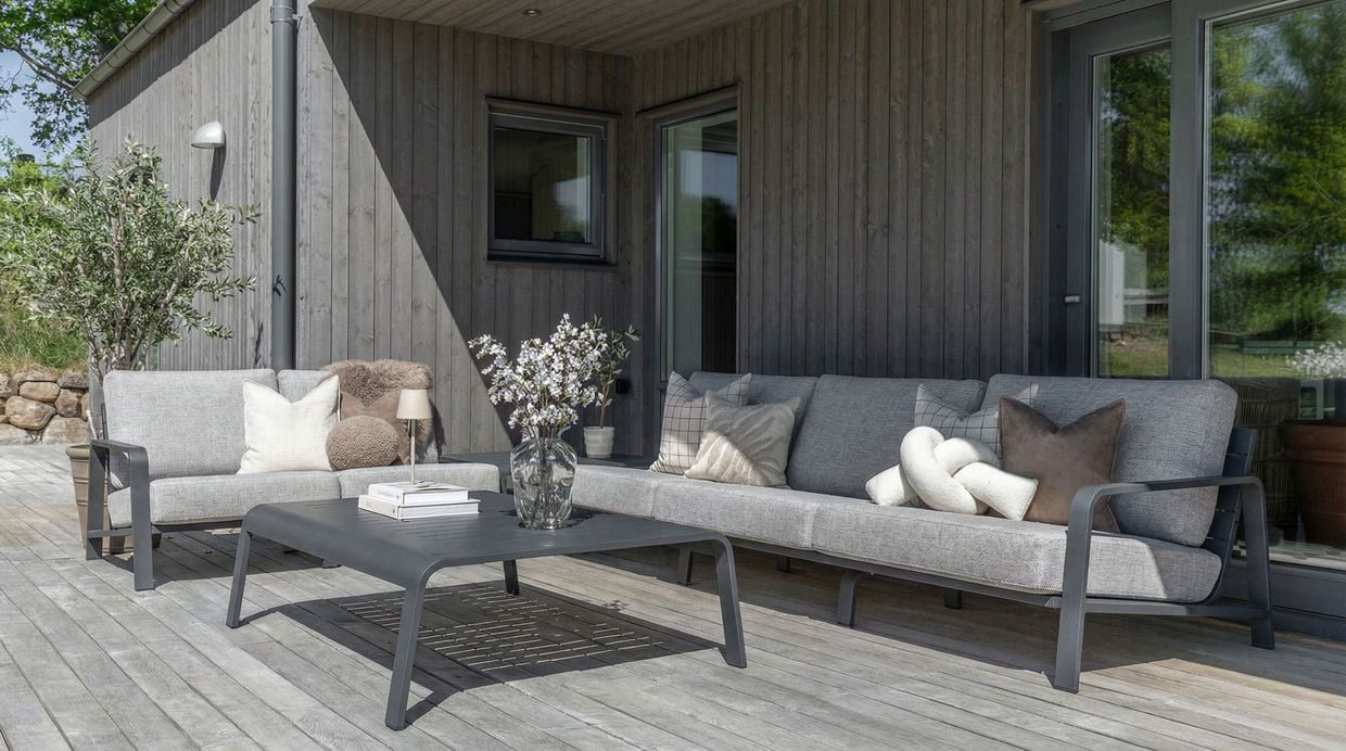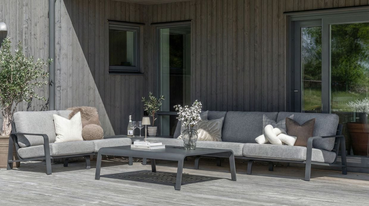 Jonstorp är en exklusiv och flexibel modulsoffa för utomhusbruk som kombinerar modern design med genomtänkt komfort. Soffan är tillverkad i pulverlackerad aluminium och har rejält stoppade dynor i vattenavvisande polyester. Tack vare sin generösa stoppning och riktiga sittvinkel erbjuder Jonstorp en komfortnivå som skiljer sig tydligt från de flesta andra byggbara loungesoffor på marknaden.