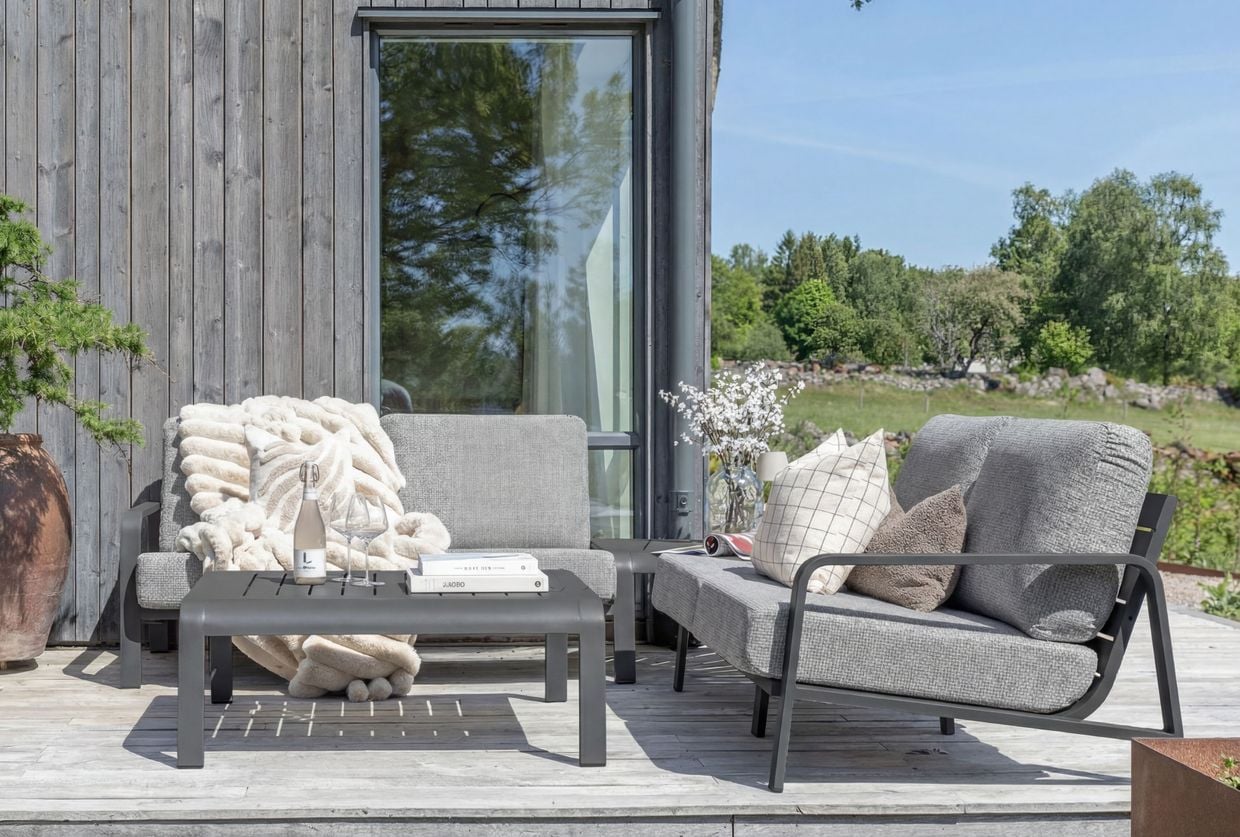 Jonstorp är en exklusiv och flexibel modulsoffa för utomhusbruk som kombinerar modern design med genomtänkt komfort. Soffan är tillverkad i pulverlackerad aluminium och har rejält stoppade dynor i vattenavvisande polyester. Tack vare sin generösa stoppning och riktiga sittvinkel erbjuder Jonstorp en komfortnivå som skiljer sig tydligt från de flesta andra byggbara loungesoffor på marknaden.