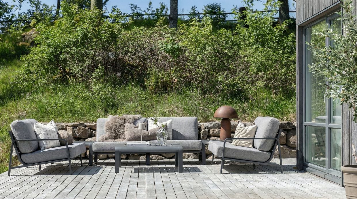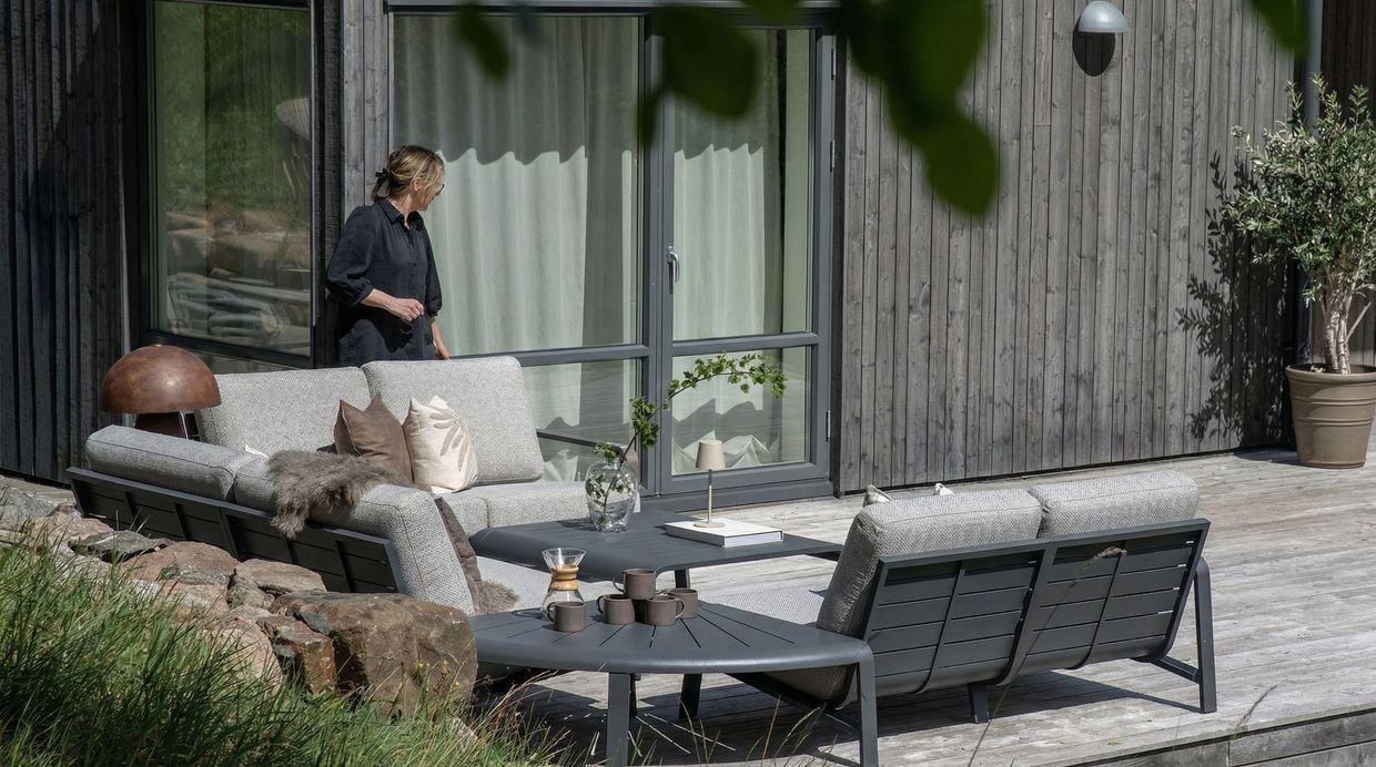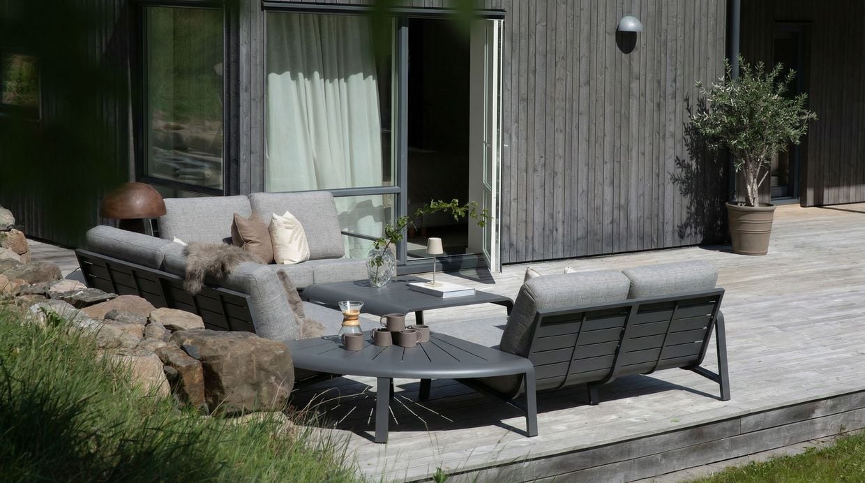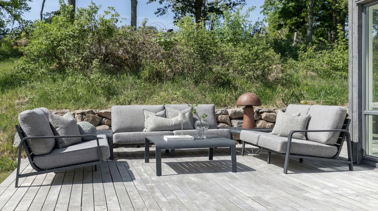 Jonstorp är en exklusiv och flexibel modulsoffa för utomhusbruk som kombinerar modern design med genomtänkt komfort. Soffan är tillverkad i pulverlackerad aluminium och har rejält stoppade dynor i vattenavvisande polyester. Tack vare sin generösa stoppning och riktiga sittvinkel erbjuder Jonstorp en komfortnivå som skiljer sig tydligt från de flesta andra byggbara loungesoffor på marknaden.