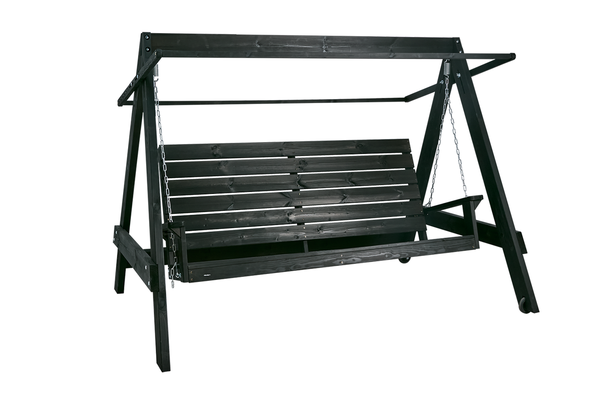 Klassisk hammock i svartlaserad furu, med hjul för enkel förflyttning. Dynor och tak säljs separat.