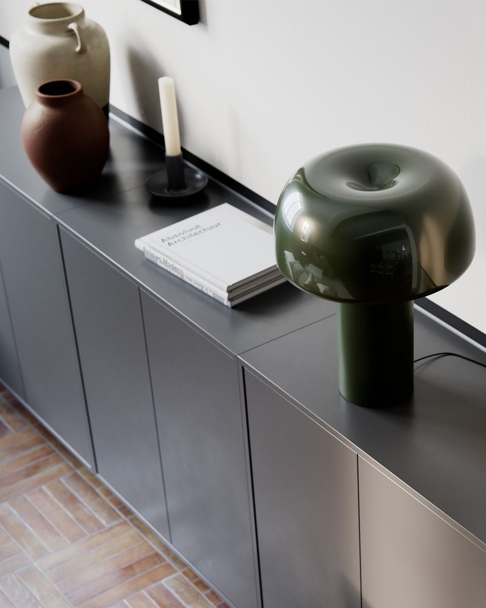 Upptäck bordslampan Lean On Me, en modern lampa som kombinerar stil och funktionalitet. Med en höjd på 41 cm och en diameter på 33 cm är denna lampa en perfekt inredningsdetalj för ditt hem. Lampan är tillverkad i metall, där lampfoten har en matt finish och skärmen en blank finish, vilket skapar en vacker kontrast. Lean on Me finns i tre sofistikerade färger: beige, mörkgrön och svart, vilket gör det enkelt att hitta den perfekta matchningen för din inredning. En av lampans utmärkande funktioner är den justerbara skärmen, som låter dig rikta ljuset precis dit du vill ha det. Genom den riktbara skärmen kan du enkelt sätta din egen personliga prägel på lampan och anpassa den efter dina behov. Lean on Me är den perfekta kombinationen av form och funktion, och en idealisk belysningslösning för alla moderna hem.
