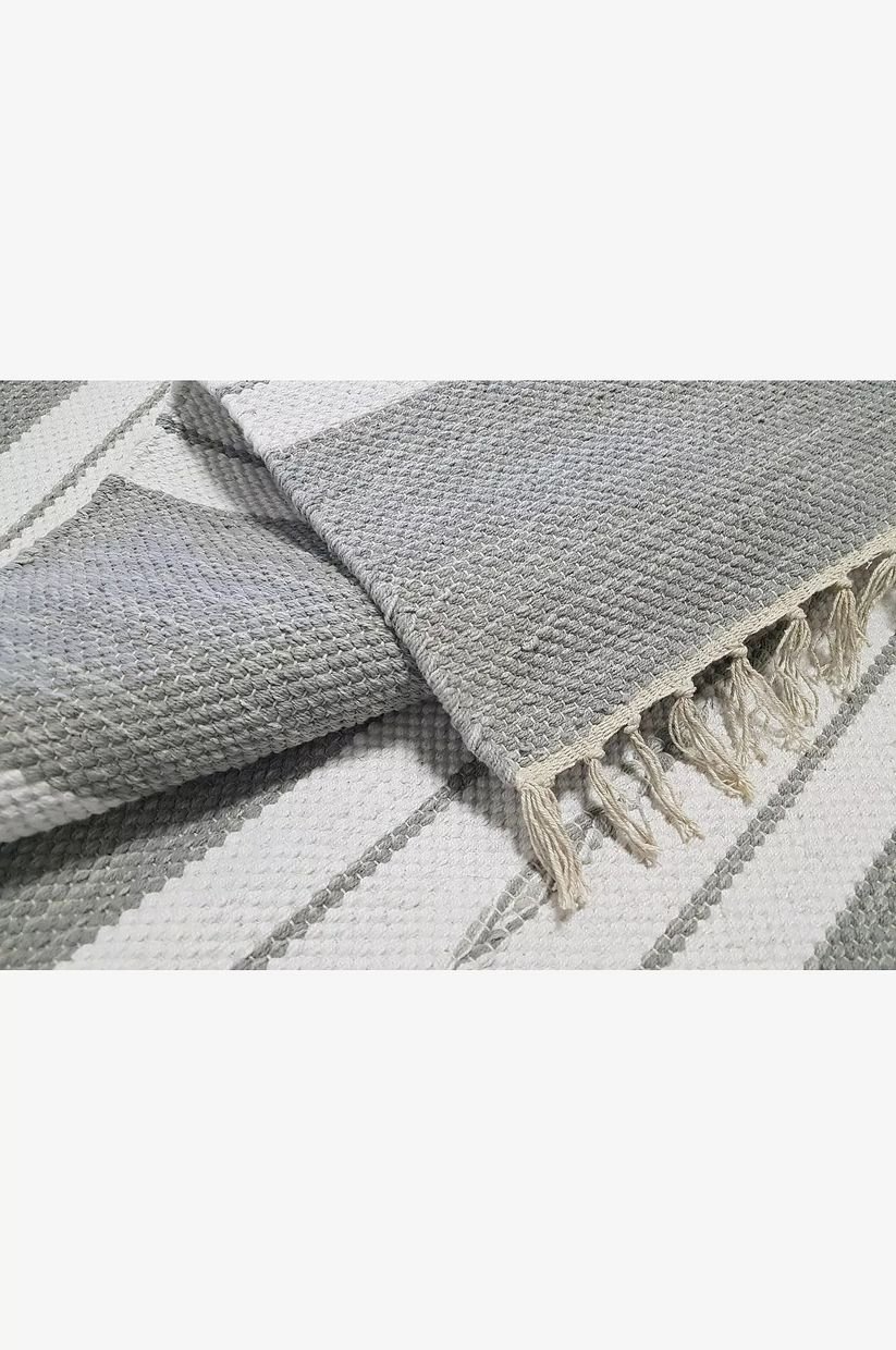 Vacker handvävd trasmatta i ljusgrått och vitt. Passar perfekt i köket eller hallen. Rekomenderas att man lägger halkskydd under.