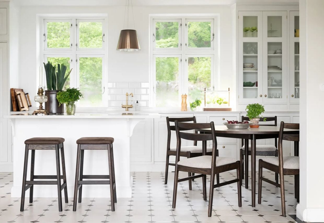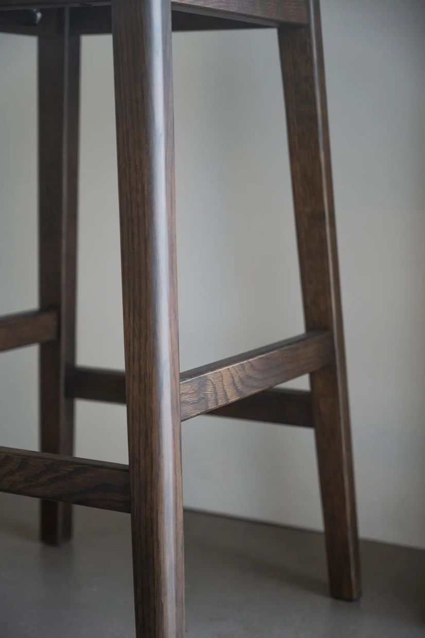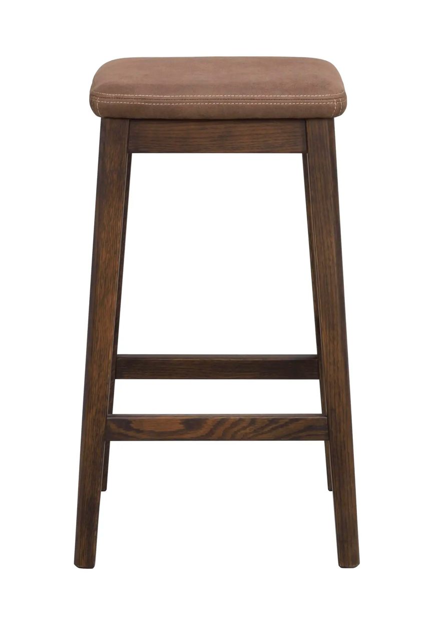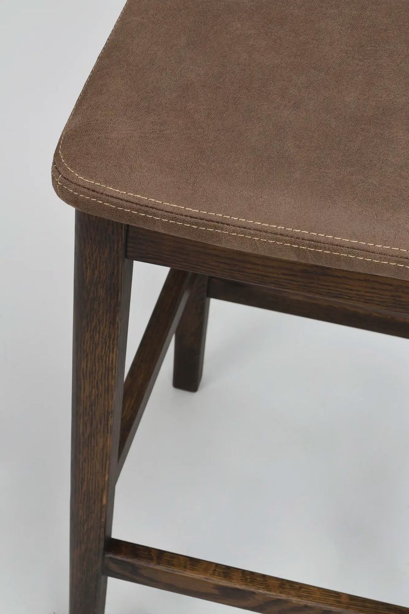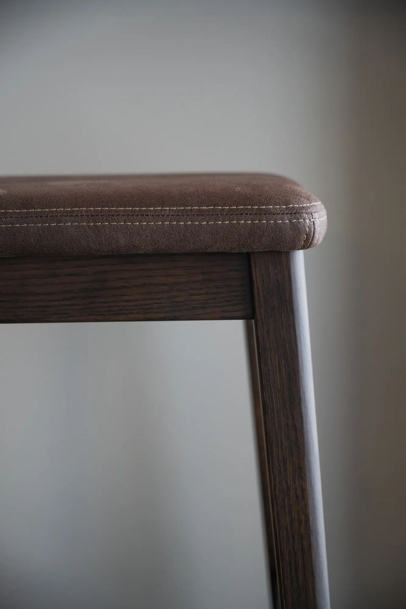 Livermore barpall kombinerar stilren design med komfort. Med sina raka linjer i massiv, FSC®-certifierad, brun ek och en elegant stoppad sits i slitstarkt lädertextil är den både modern och tidlös. Perfekt för köksön eller barbordet.