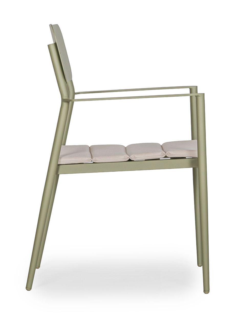 Stolen är tillverkad helt i slitstarkt aluminium, vilket gör den både lätt och tålig – perfekt för utomhusbruk. Den är lackerad i vår egen kulör nordisk grön, en mjuk och harmonisk ton som enkelt kan kombineras med alla våra övriga möbler i samma färg för en enhetlig och stilfull helhet.