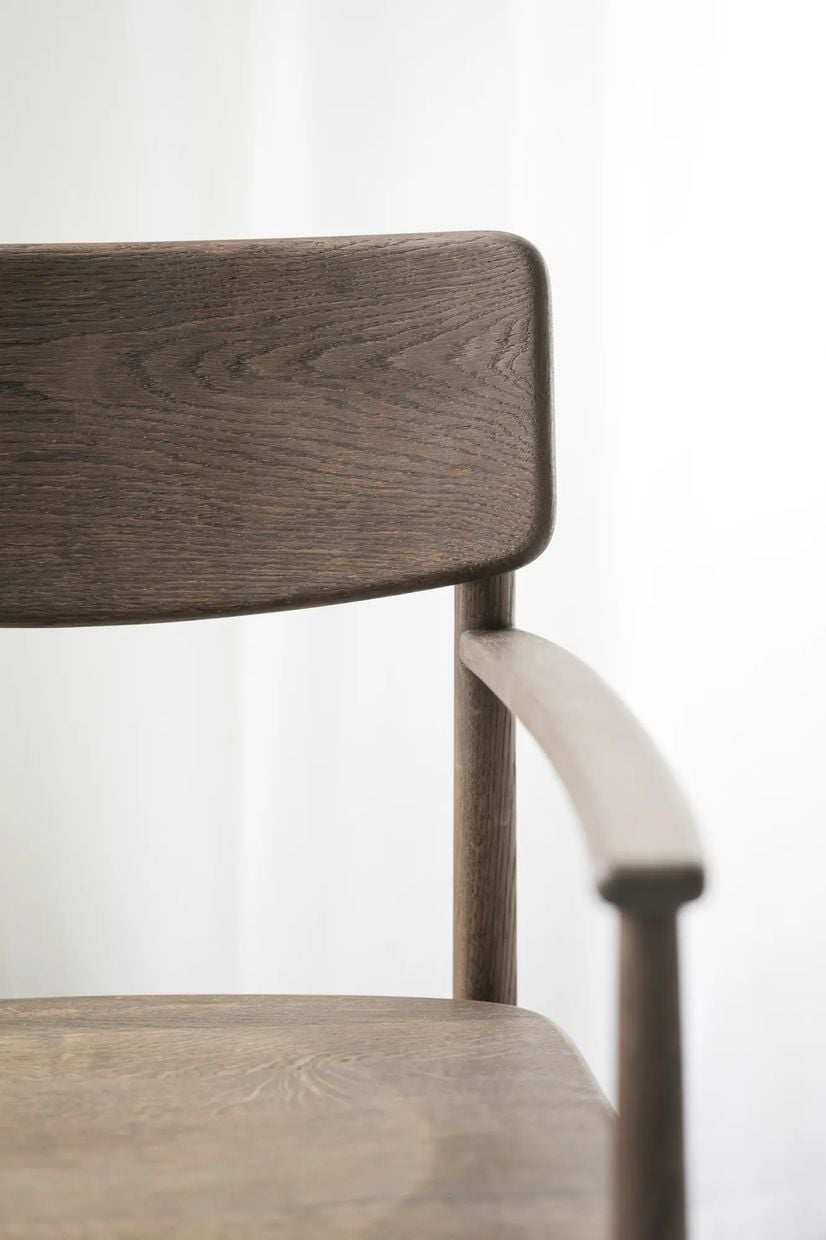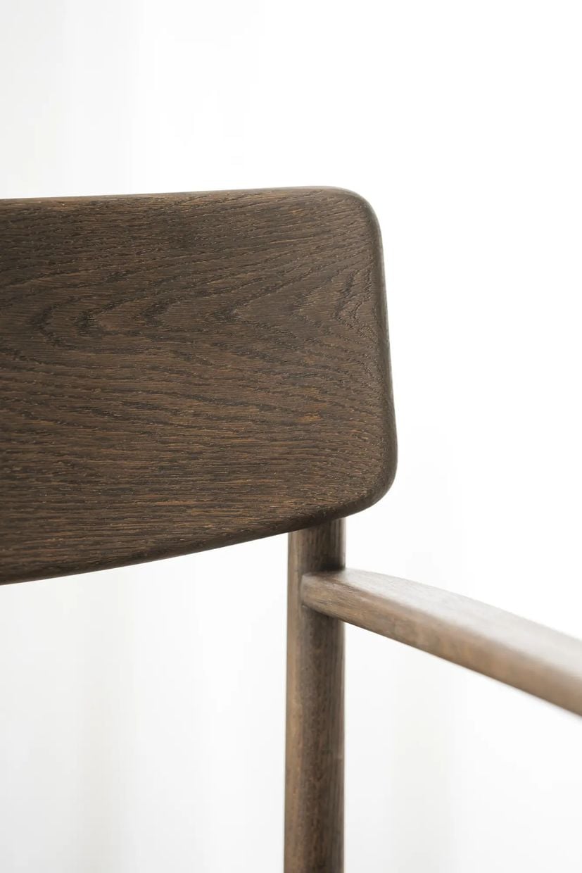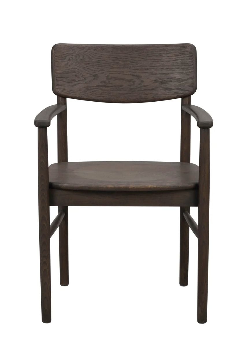 Maidstone stol i massiv brun ek. Ett unikt hantverk med detaljer som karmar, skålad sits och uttänkta linjer. En karmstol som tar för sig lika bra som en loungestol i vardagsrummet som en matstol vid matsalsbordet. Tidlös design som aldrig går ur tiden. Levereras monterad i FSC®-certifierat trä. Finns även i naturfärgad ek.