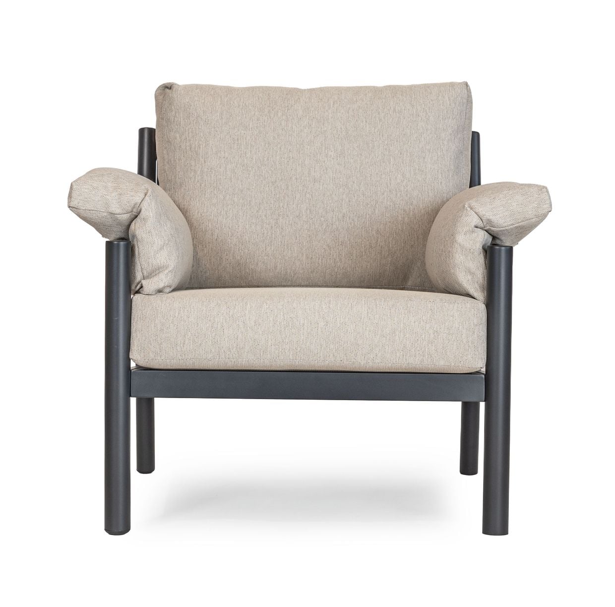 Den robusta stommen i aluminium ger en lätt men samtidigt stabil konstruktion som är motståndskraftig mot väder och vind. Sittdynorna är klädda i 100% polyester med vattenavvisande egenskaper, vilket gör att du kan njuta av komfort även vid varierande väderförhållanden.