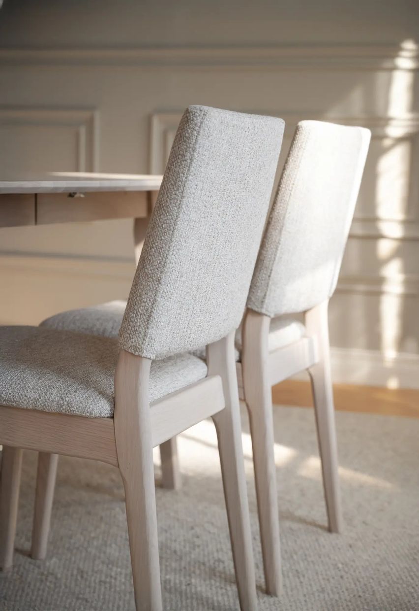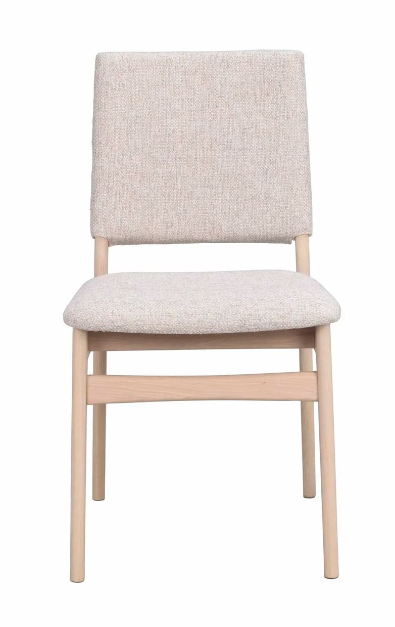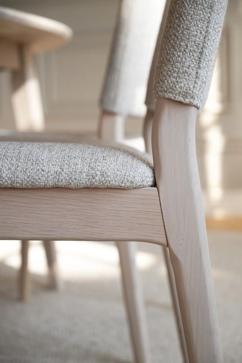 Medford i vitpigmenterad ek och ljusbeige textil är en nätt stol med luftig design och en balans mellan rundade och raka former som ger den ett harmoniskt uttryck. Den stilrena siluetten gör att den passar lika bra i det moderna som i det mer klassiska hemmet. Stolen är en bra match till många matbord men den är särskilt fin tillsammans med matbord från vår Filippa-kollektion.