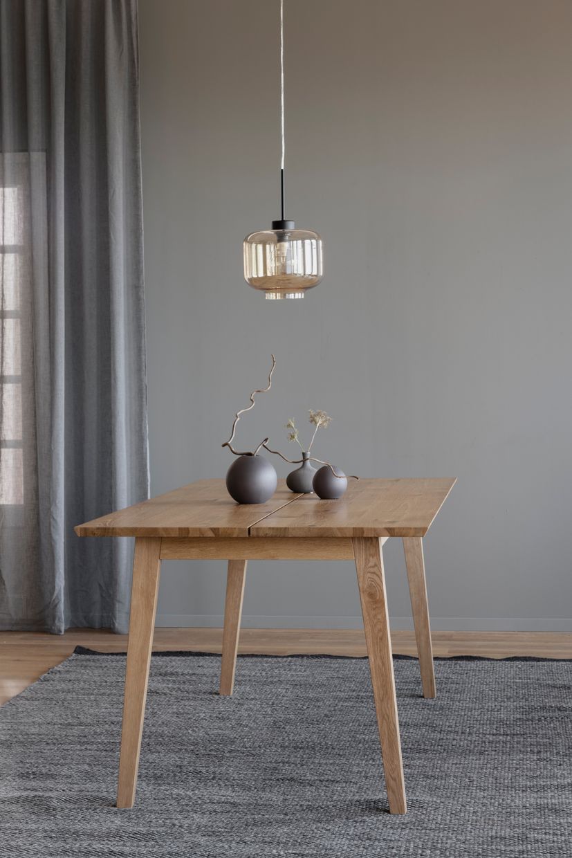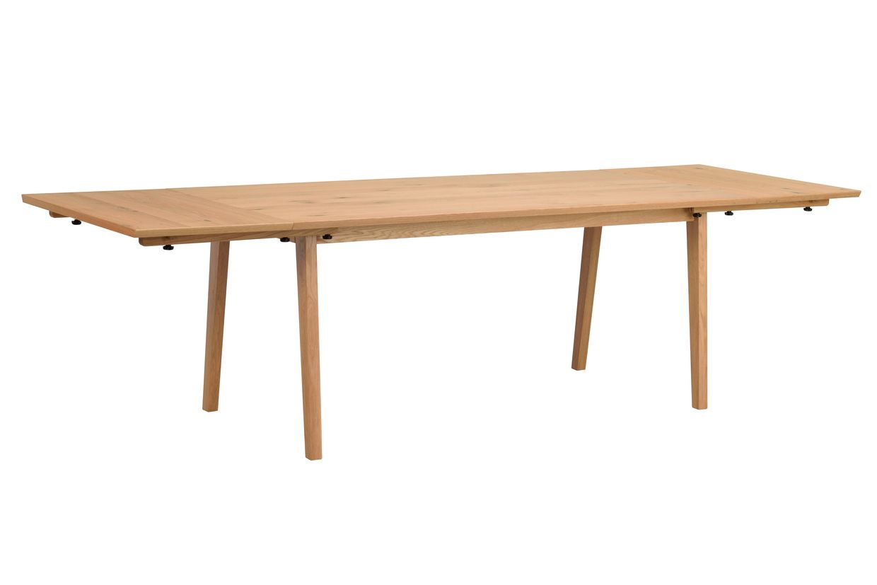 Melfort matbord 180 cm i borstad vildeksfanér med massiva ben. Bordet går att förlänga på båda sidor med tillägg som köps separat. Matbordet har en dekorativ tvådelad bordsskiva och det finns en matchande sittbänk som ingår i serien.