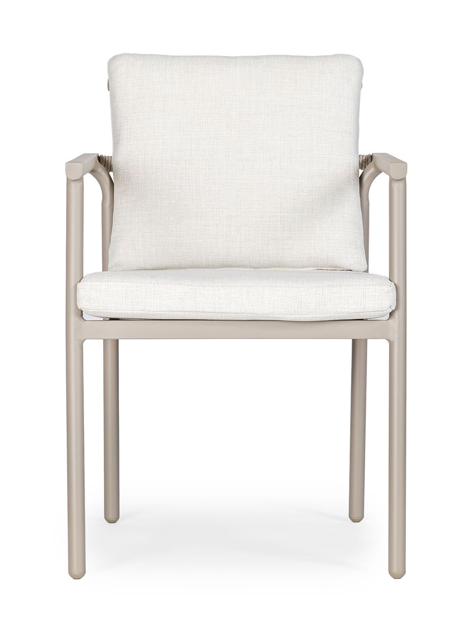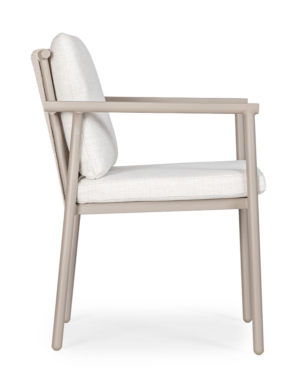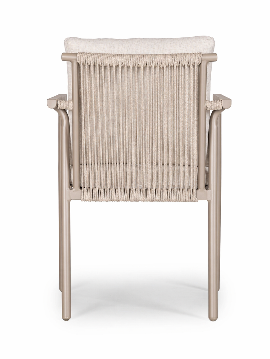 Stolen är tillverkad i slitstark aluminium och lackad i vår egna kulör Nordisk Beige. Den mjuka, harmoniska tonen gör att stolen enkelt kan kombineras med samtliga våra bord i samma kulör, vilket skapar en enhetlig och genomtänkt helhet på uteplatsen.