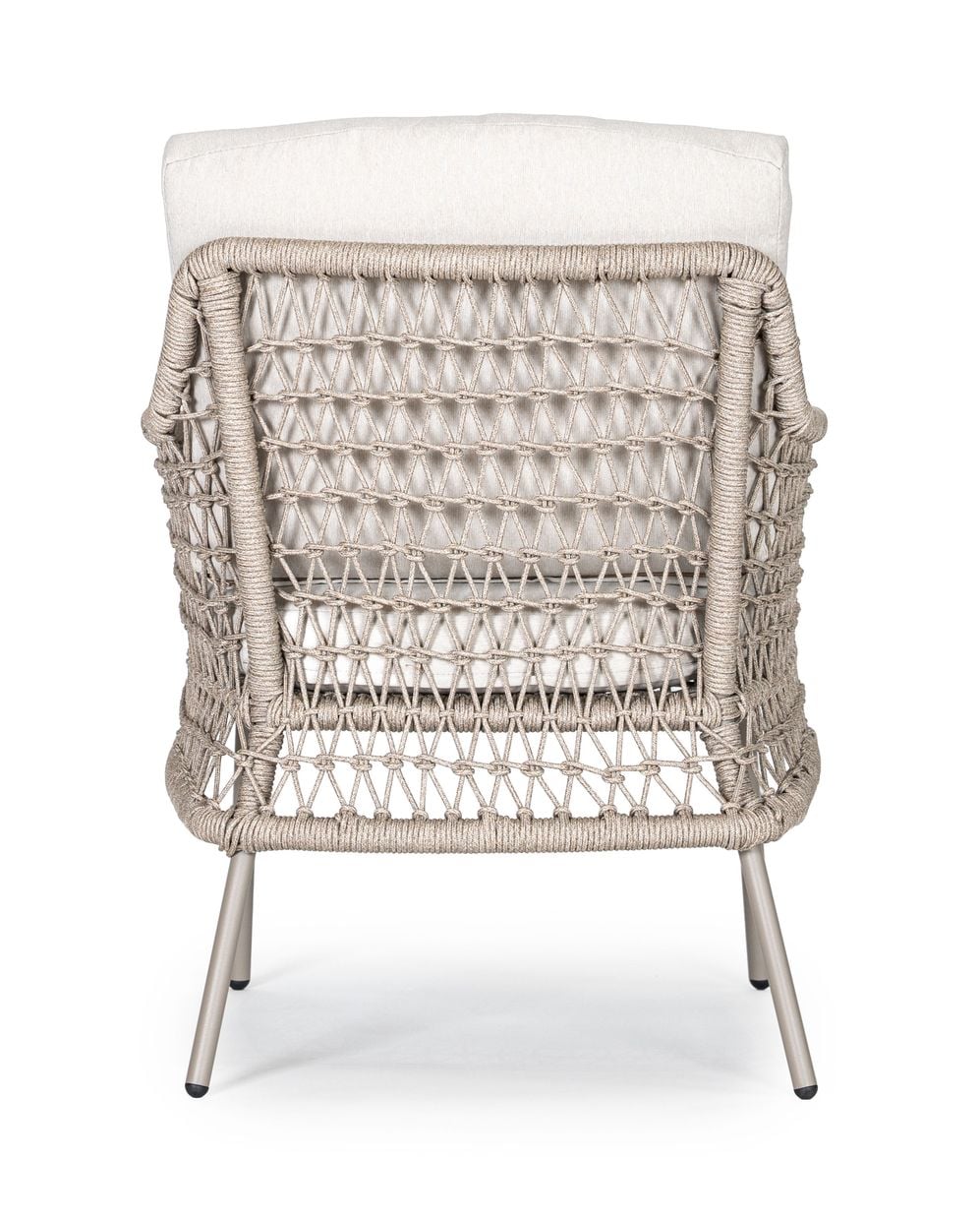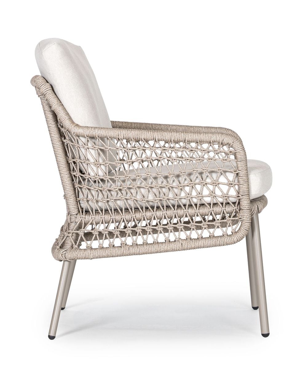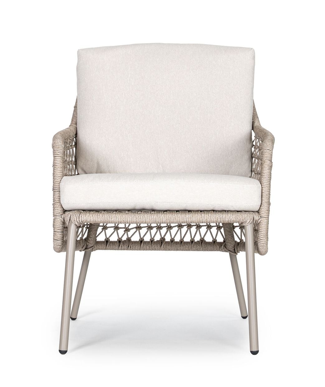 Arild karmstol kombinerar komfort med ett luftigt och modernt formspråk. Stolen är klädd i vädertåligt olefintyg och har flätade detaljer i slitstarkt olefinrep, vilket ger en vacker balans mellan mjukhet och struktur. Den stabila konstruktionen gör stolen både hållbar och bekväm, även under långa sittningar.