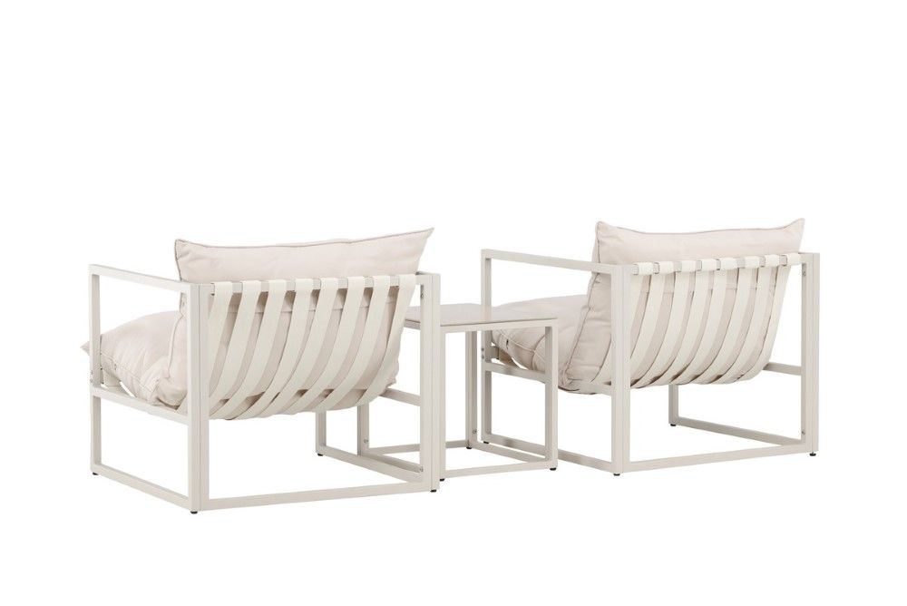 Loungegruppen Messina är det perfekta valet för dig som vill skapa en stilfull och inbjudande atmosfär på uteplatsen. I en trendig beige färg ger Messina ett modernt och elegant uttryck som smälter in i alla utomhusmiljöer. Gruppen består av två bekväma fåtöljer och ett stilrent glasbord – den perfekta kombinationen för avslappnade stunder i solen. Fåtöljerna är tillverkade i robust stål och kommer med mjuka dynor i slitstark polyester, som ger en behaglig sittupplevelse. Bordet är designat med en glasskiva som vilar på en stålram, vilket skapar en snygg och hållbar yta. Placera Messina på verandan eller altanen och njut av avkopplande stunder i sällskap med stil och komfort.