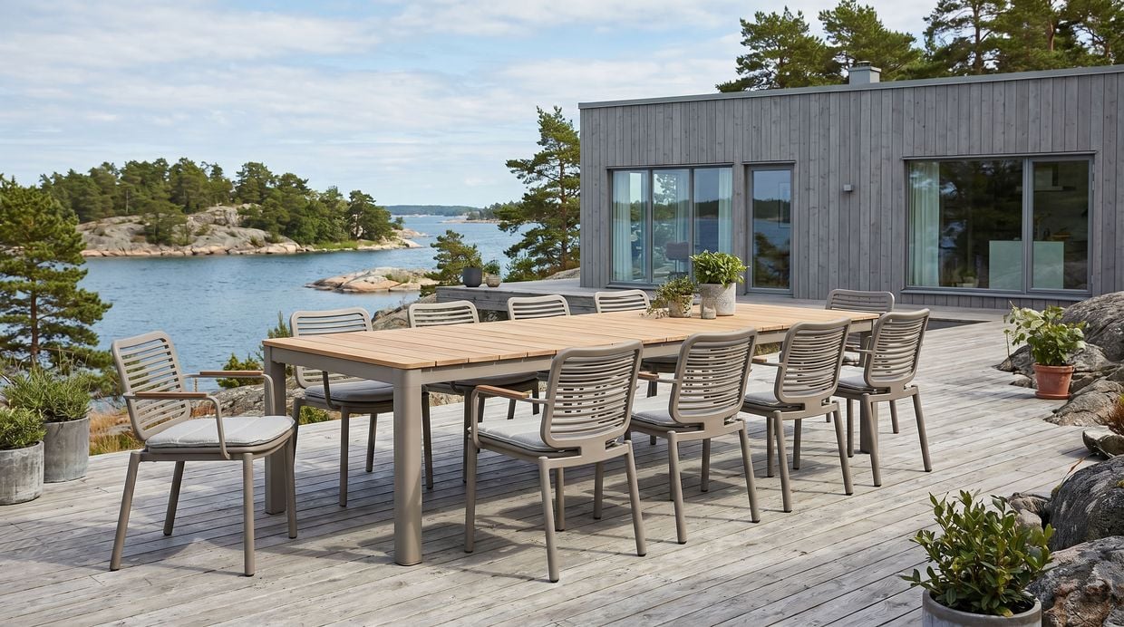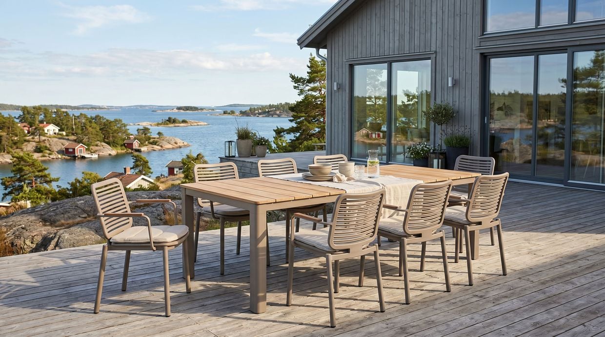 Detta är en matgrupp som kombinerar funktion, komfort och design – skapad för långa middagar, spontana sammankomster och ett stilrent uteliv.