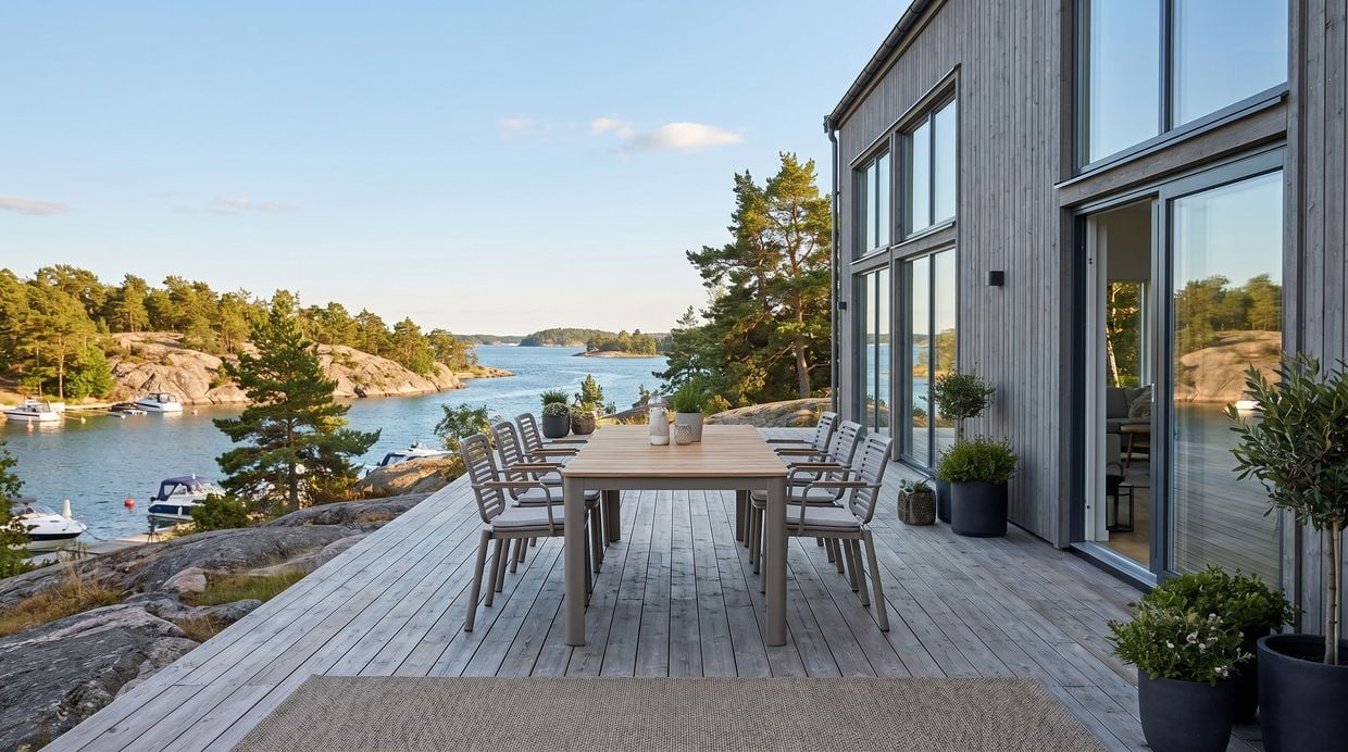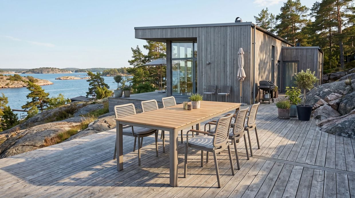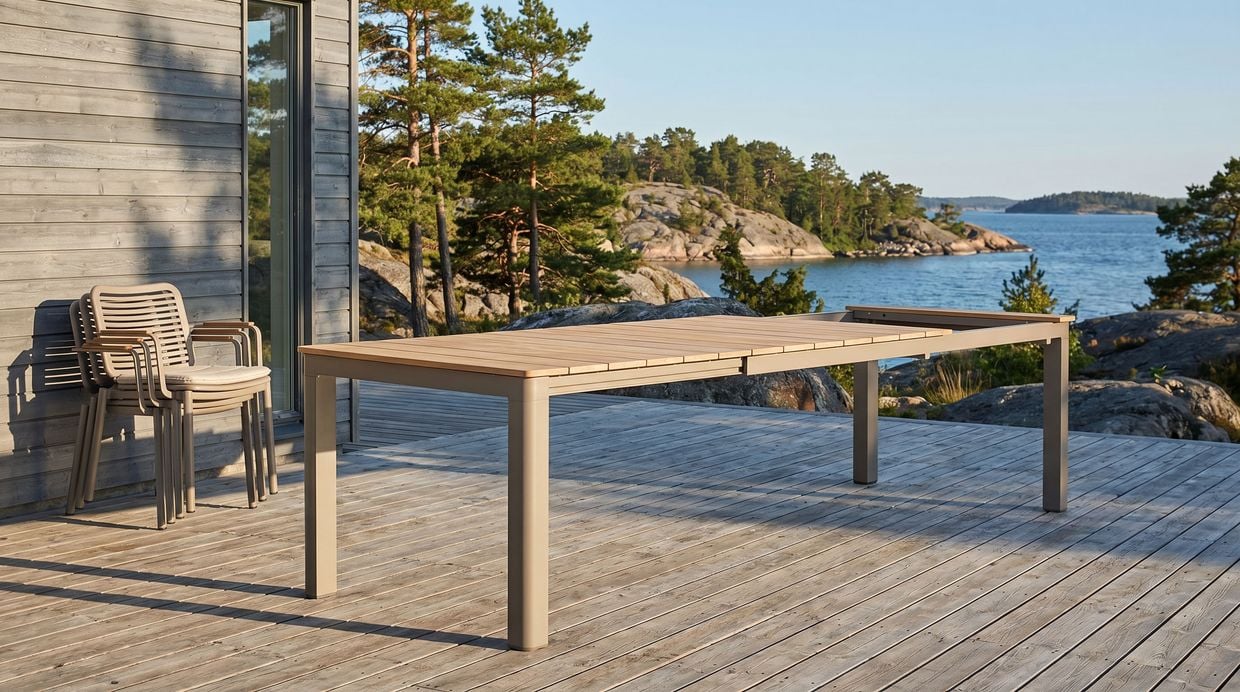 Underredet i kulören Nordisk Beige ger ett modernt och stilrent intryck och gör det enkelt att matcha med olika utemiljöer och textilier.