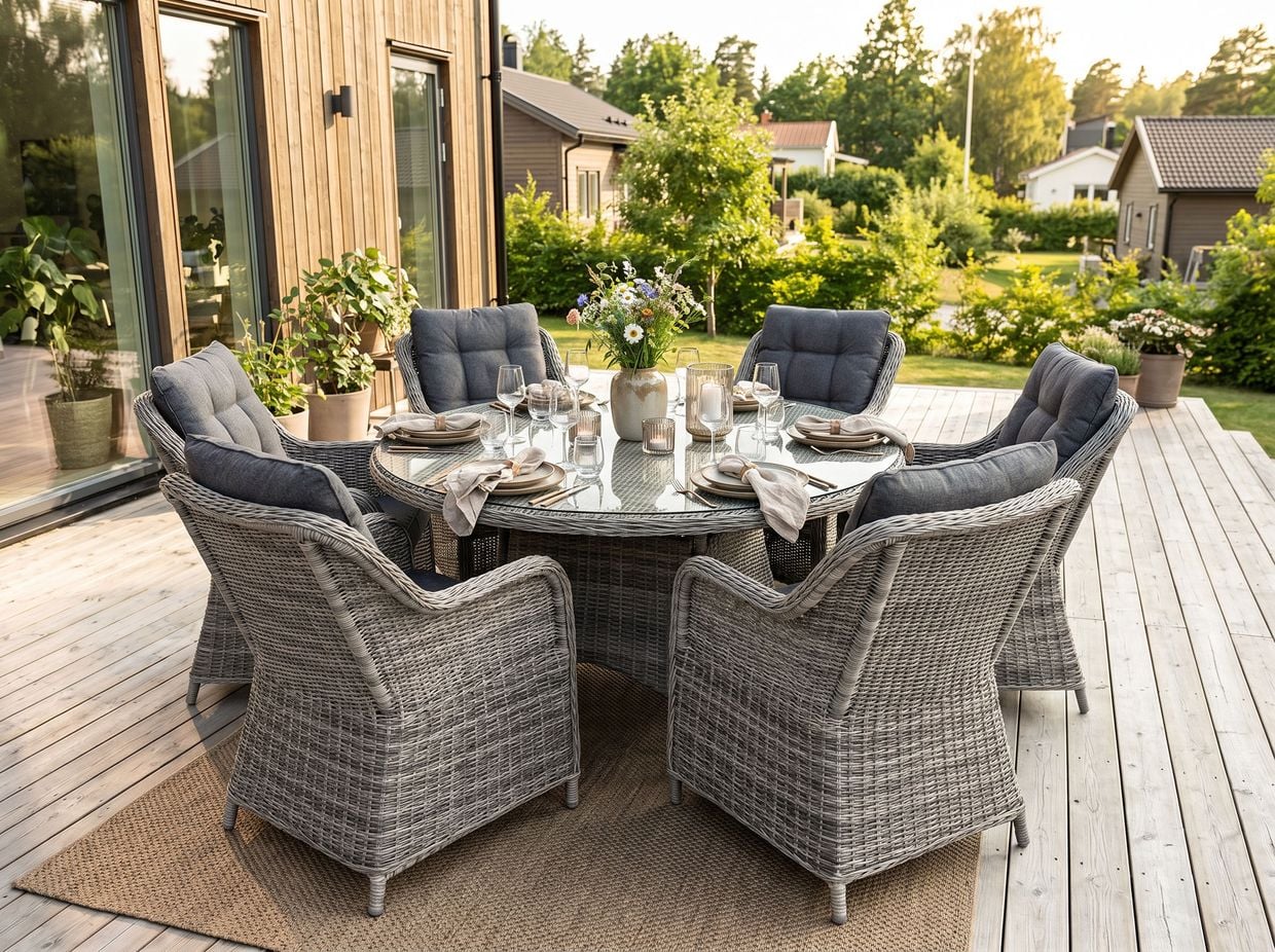New Haven Matgrupp Rund 150 cm – Stil och Komfort för Utemiljön