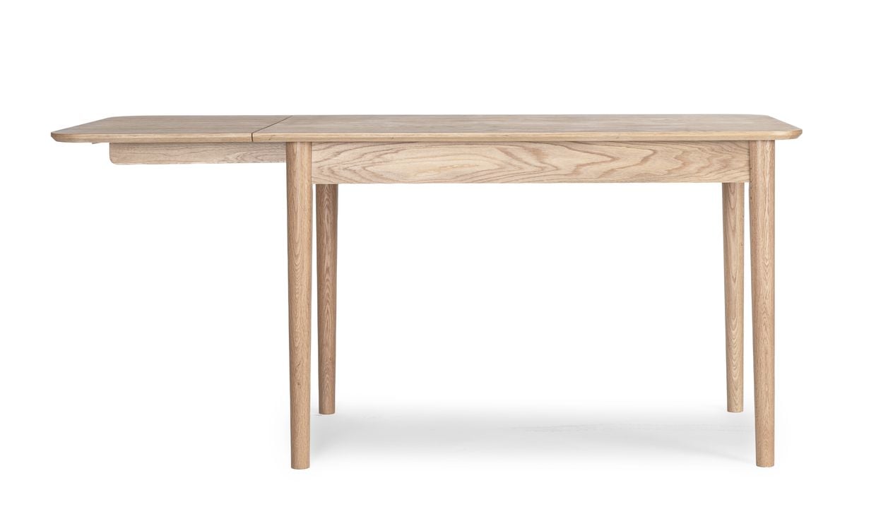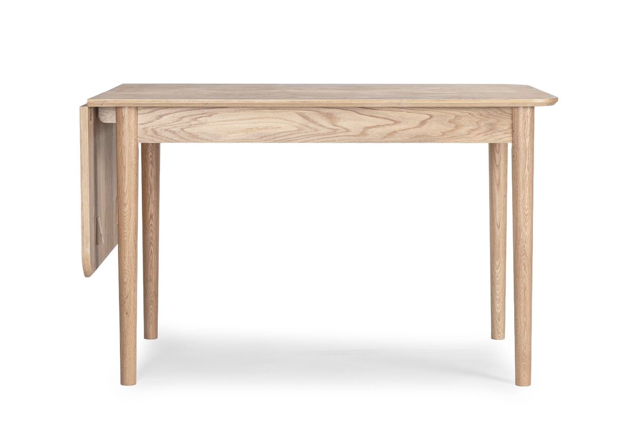 Den smarta klaffen gör att du enkelt kan anpassa bordets storlek efter behov – perfekt för mindre utrymmen eller när du vill få plats för fler gäster. Med klaffen nedfälld har Oskar ett nätt och smidigt format, och med klaffen uppfälld får du extra bordsutrymme på totalt 165 cm i längd.