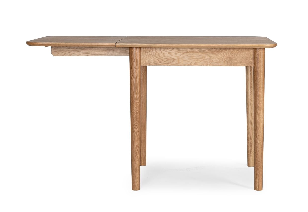 Oskar klaffbord är en mångsidig möbel som passar lika bra som matbord i det lilla hemmet som som ett extra bord i vardagsrummet eller arbetsytan i hemmakontoret. En elegant och funktionell möbel i ek som håller i många år framöver.