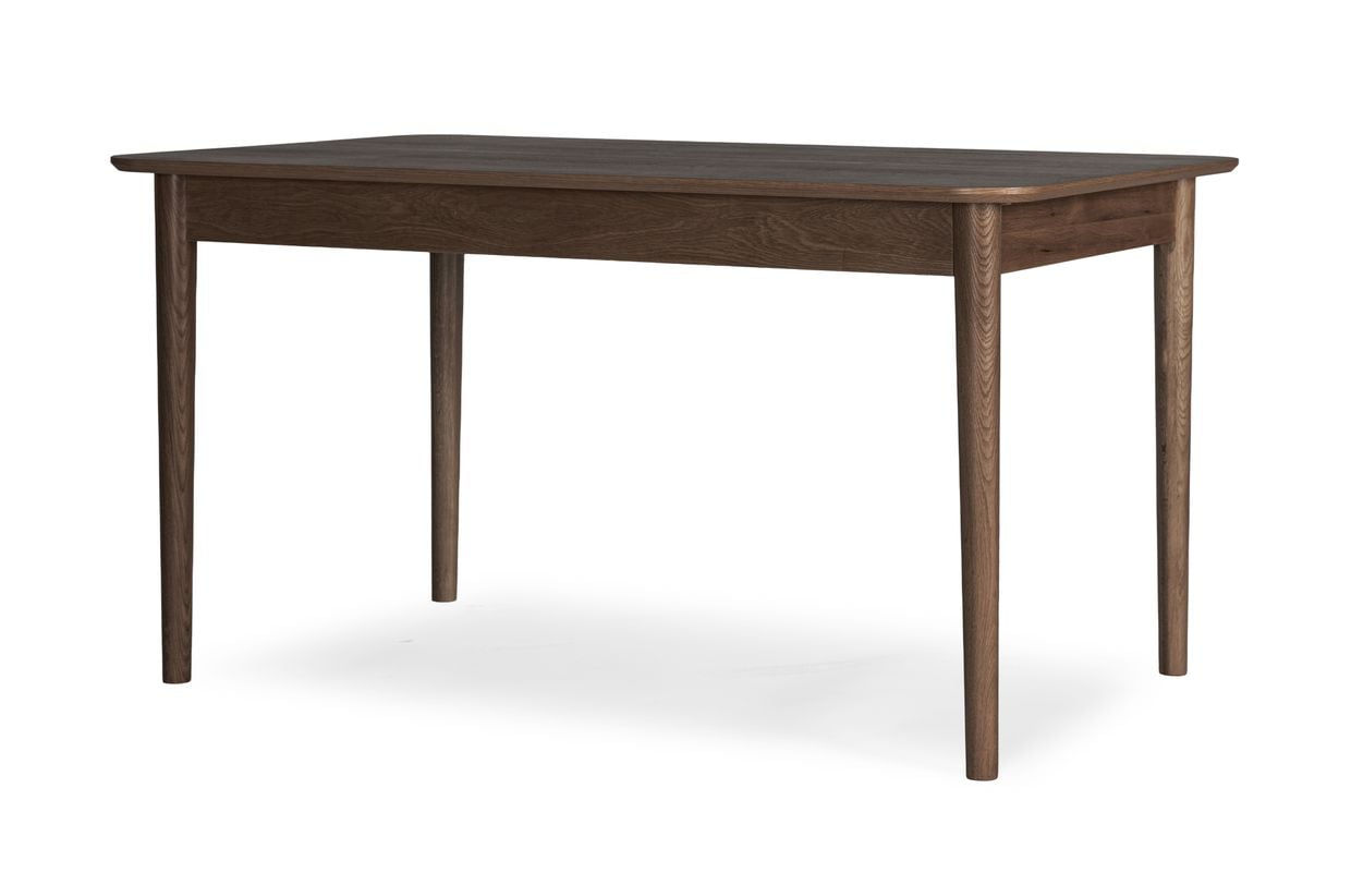 Med sina mått på 140 × 90 cm erbjuder bordet en generös yta som passar lika bra för vardagsmiddagar som för större dukningar. Bredden på 90 cm skapar gott om plats för serveringsfat, dekorationer och bekväm dukning utan att det känns trångt. De mjukt rundade hörnen och de elegant avsmalnande benen ger bordet ett varmt och inbjudande uttryck som passar in i både modern och klassisk inredning.