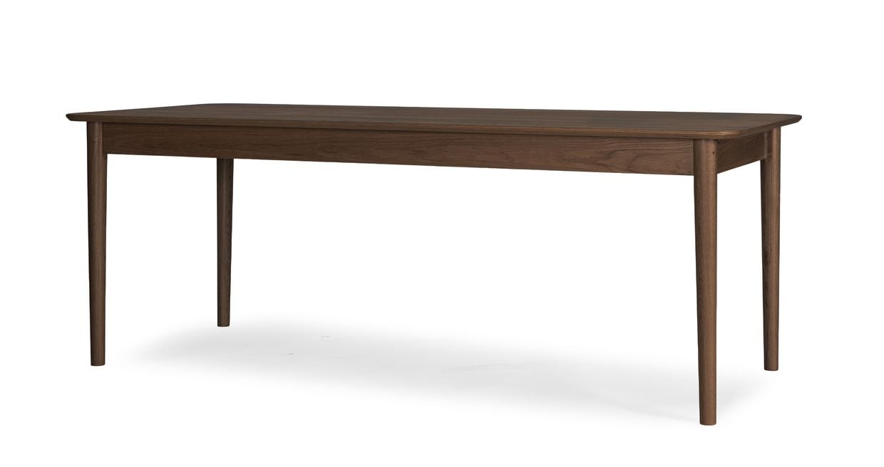Med sina mått på 200 × 90 cm erbjuder bordet en generös yta som passar lika bra för vardagsmiddagar som för större dukningar. Bredden på 90 cm skapar gott om plats för serveringsfat, dekorationer och bekväm dukning utan att det känns trångt. De mjukt rundade hörnen och de elegant avsmalnande benen ger bordet ett varmt och inbjudande uttryck som passar in i både modern och klassisk inredning.